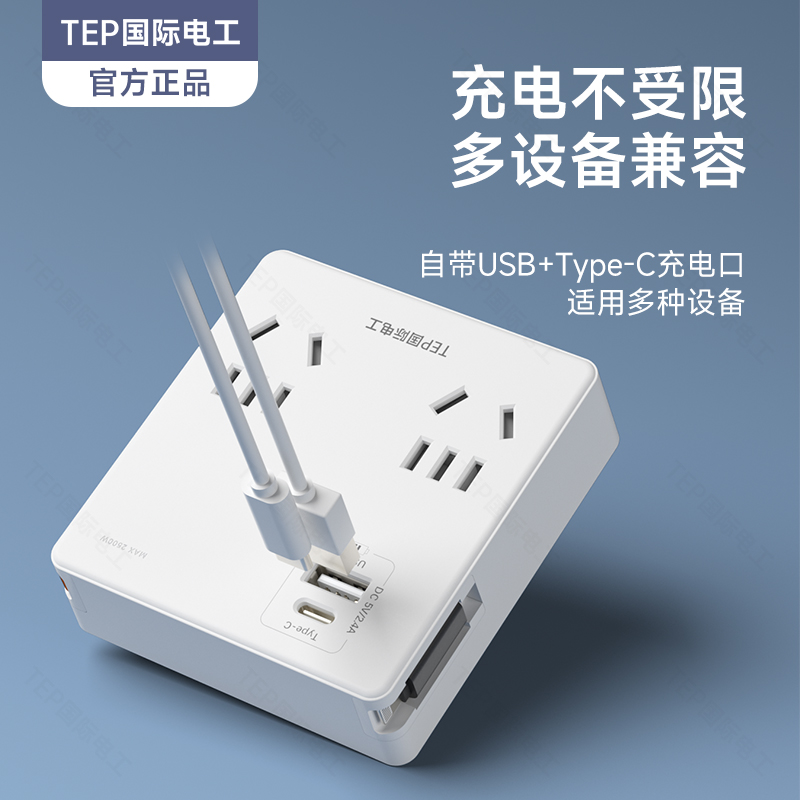 一转四(14孔)快充USB+C+伸缩线C口 一插变多插便捷用电新选择 核心优势实用性升级 一个顶七个 一体化针脚 多设备兼容 即插即用