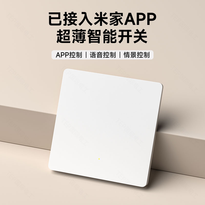已接入米家APP超薄智能开关 新一代蓝牙智能开关/零火版通用零火版需要搭配零线使用 六大升级让生活更美好 超薄设计 微动按键 小爱同学语音控制 “小爱同学,打开灯” 智慧定时 APP远程控制 单火版兼容设计