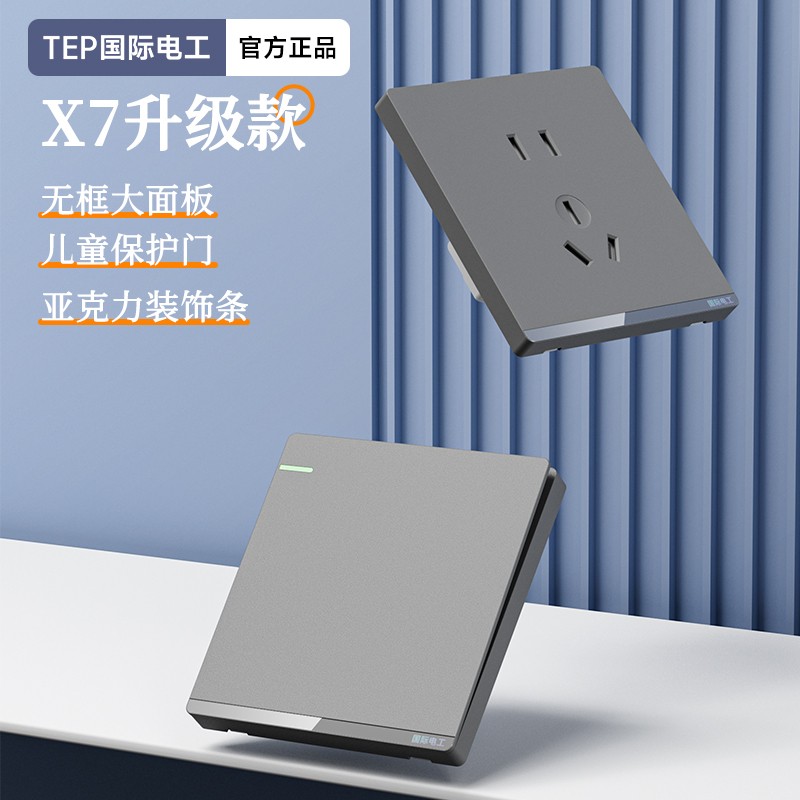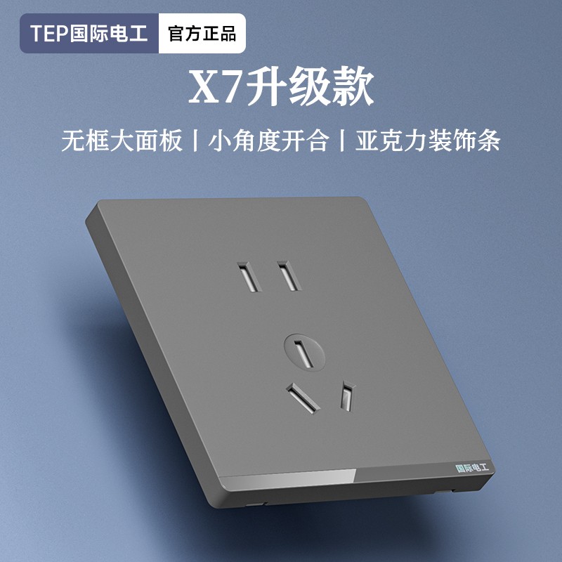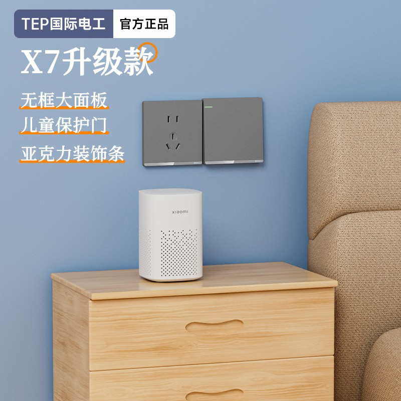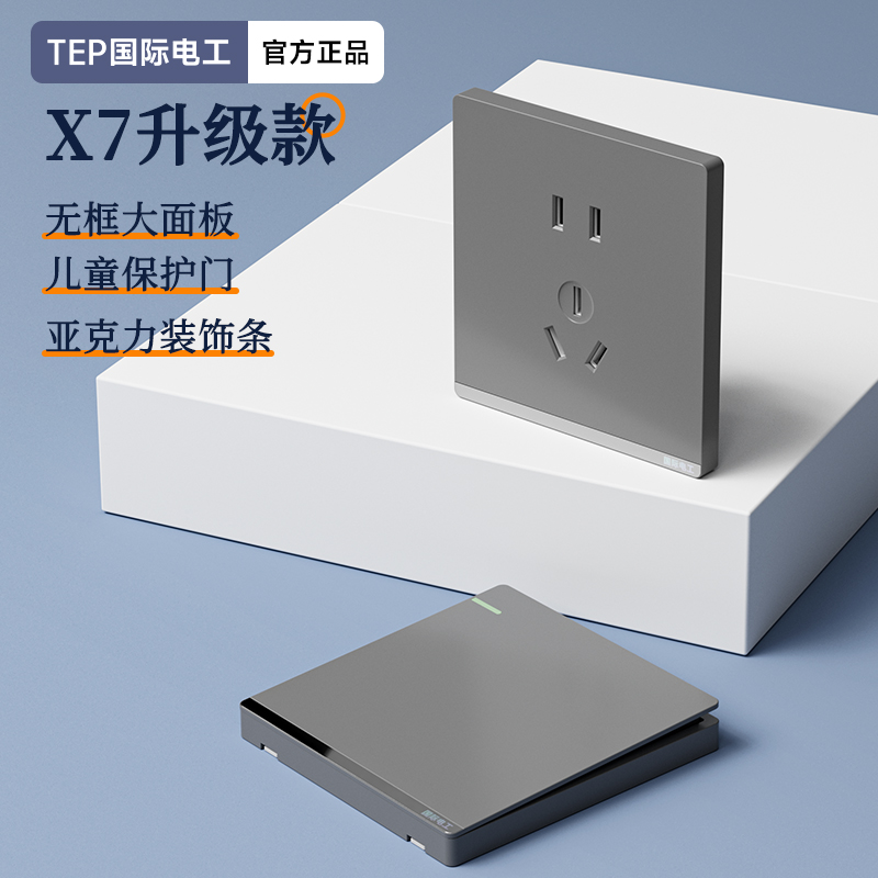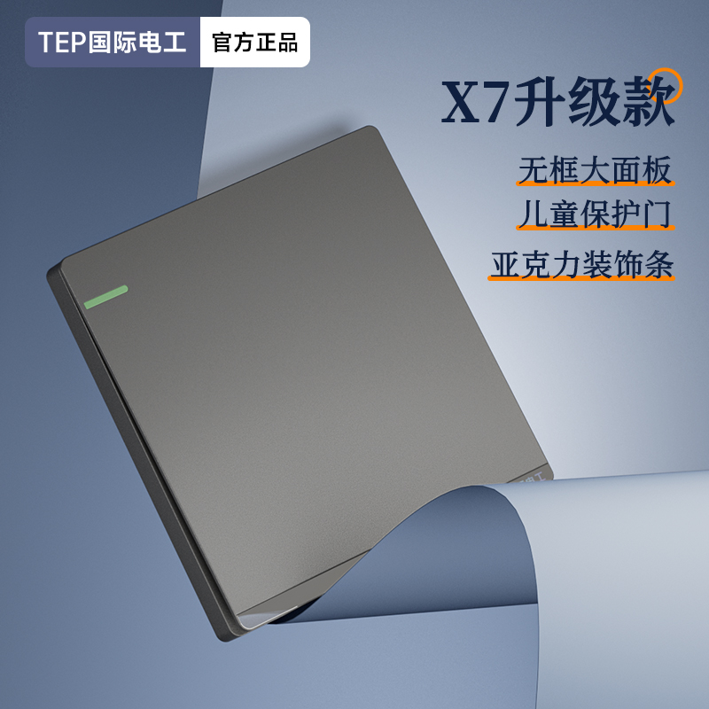X7升级款灰色开关 光影美学质感之选 家的格调 藏在每-处细节 开关上的小柔光夜起不用找 无框大面板 多重防护用电更安全 亚克力装饰条 儿童保护门 大间距 加厚铜件