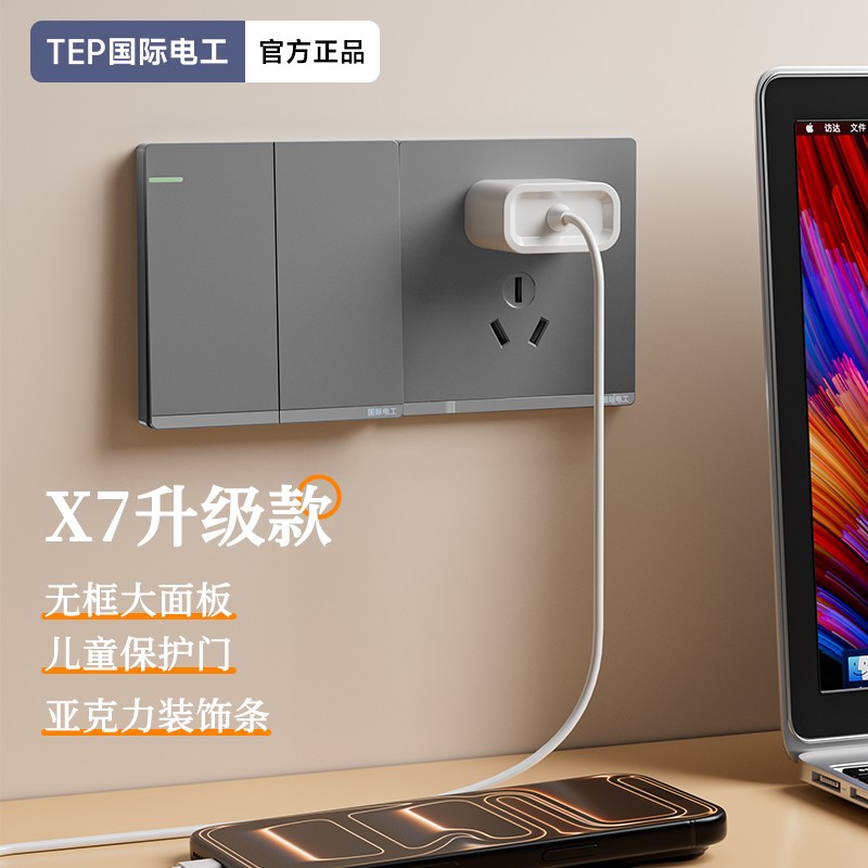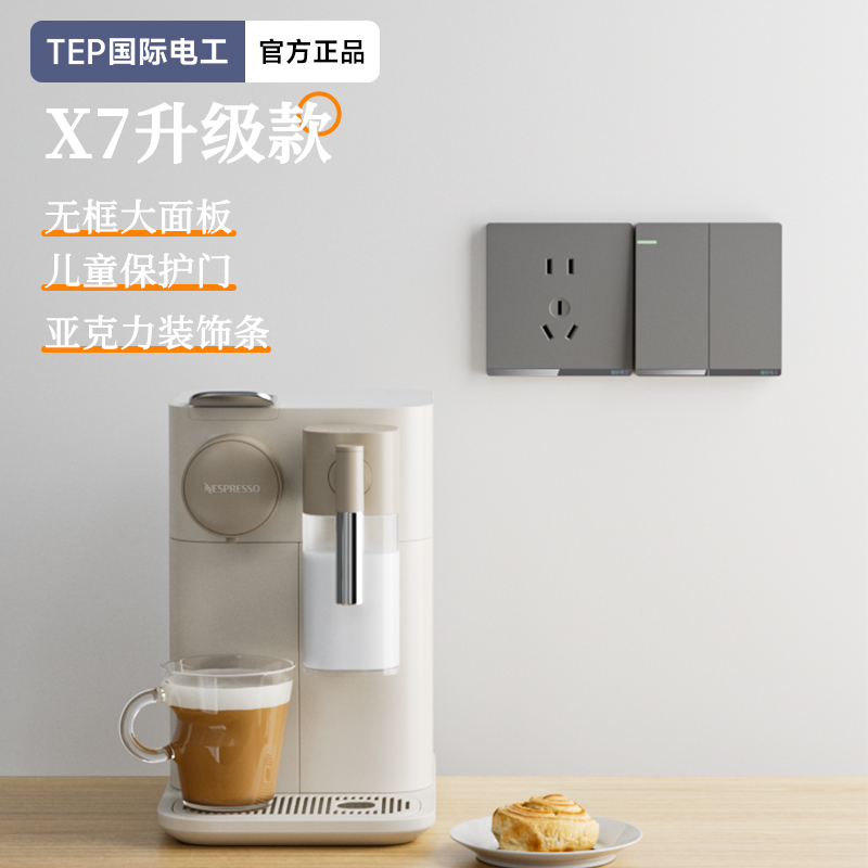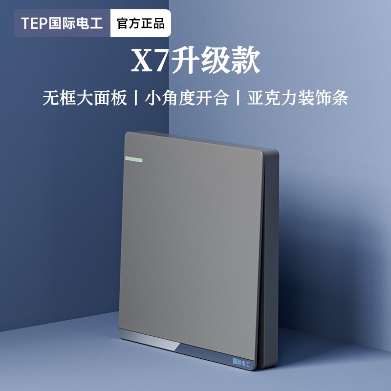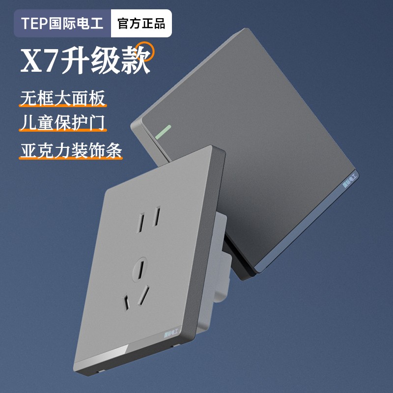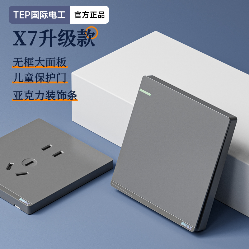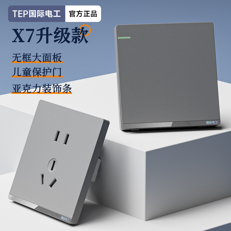 X7升级款灰色开关 光影美学质感之选 家的格调 藏在每-处细节 开关上的小柔光夜起不用找 无框大面板 多重防护用电更安全 亚克力装饰条 儿童保护门 大间距 加厚铜件