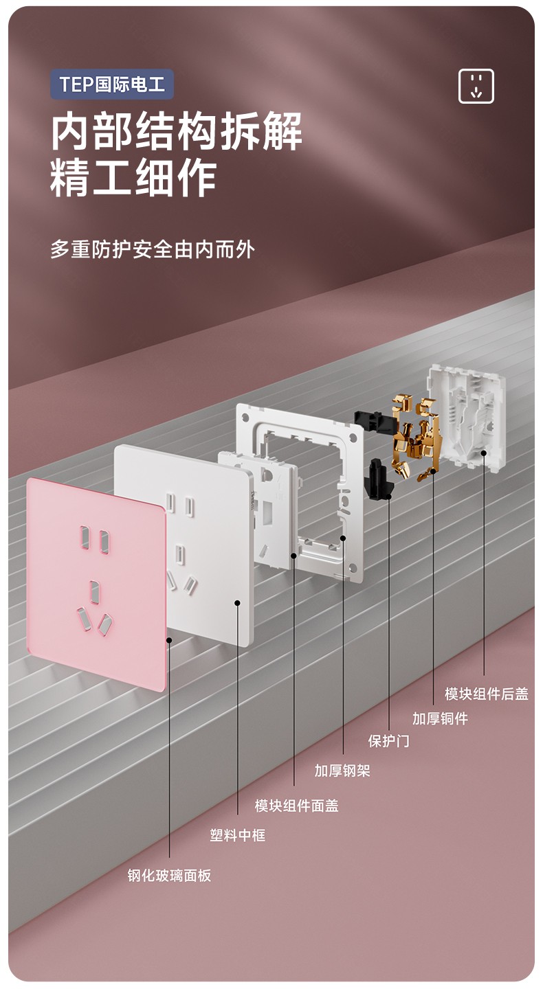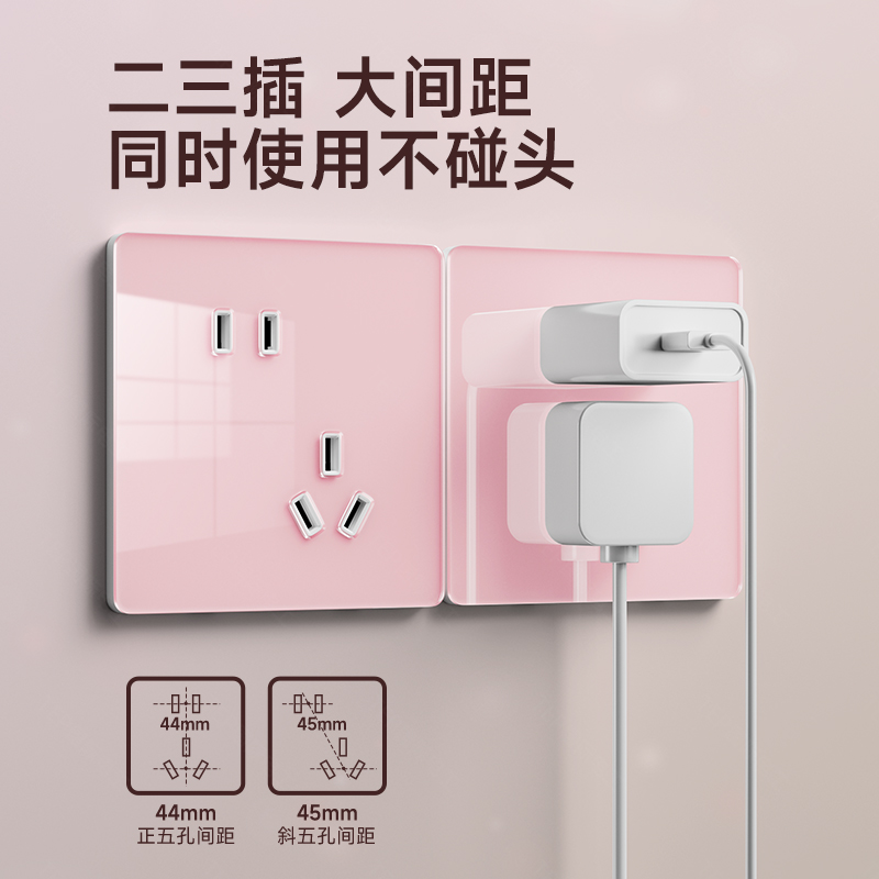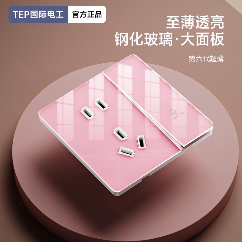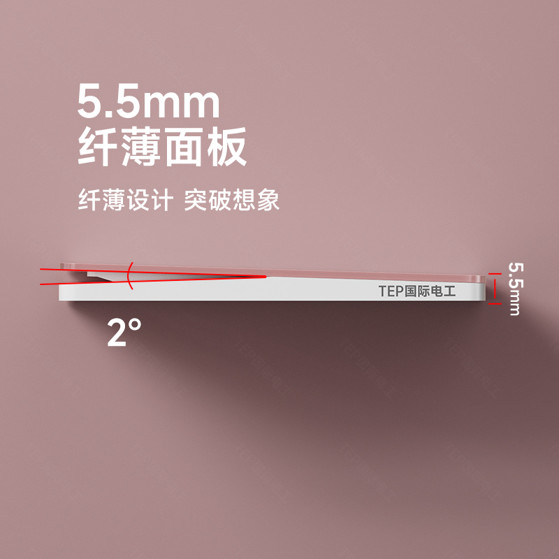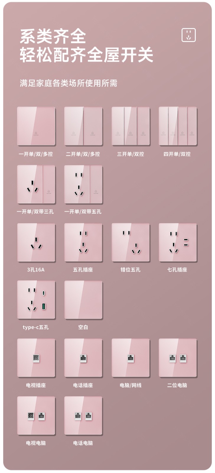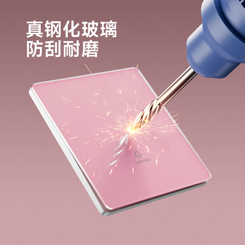 超薄钢化玻璃玫瑰粉色开关 光影会流动的墙面艺术 无框大面板馥郁玫瑰粉 至薄 至美 至简 5.5mm至薄一体贴墙 诠释平面美学 省心 一擦即净灰尘水渍轻松打理