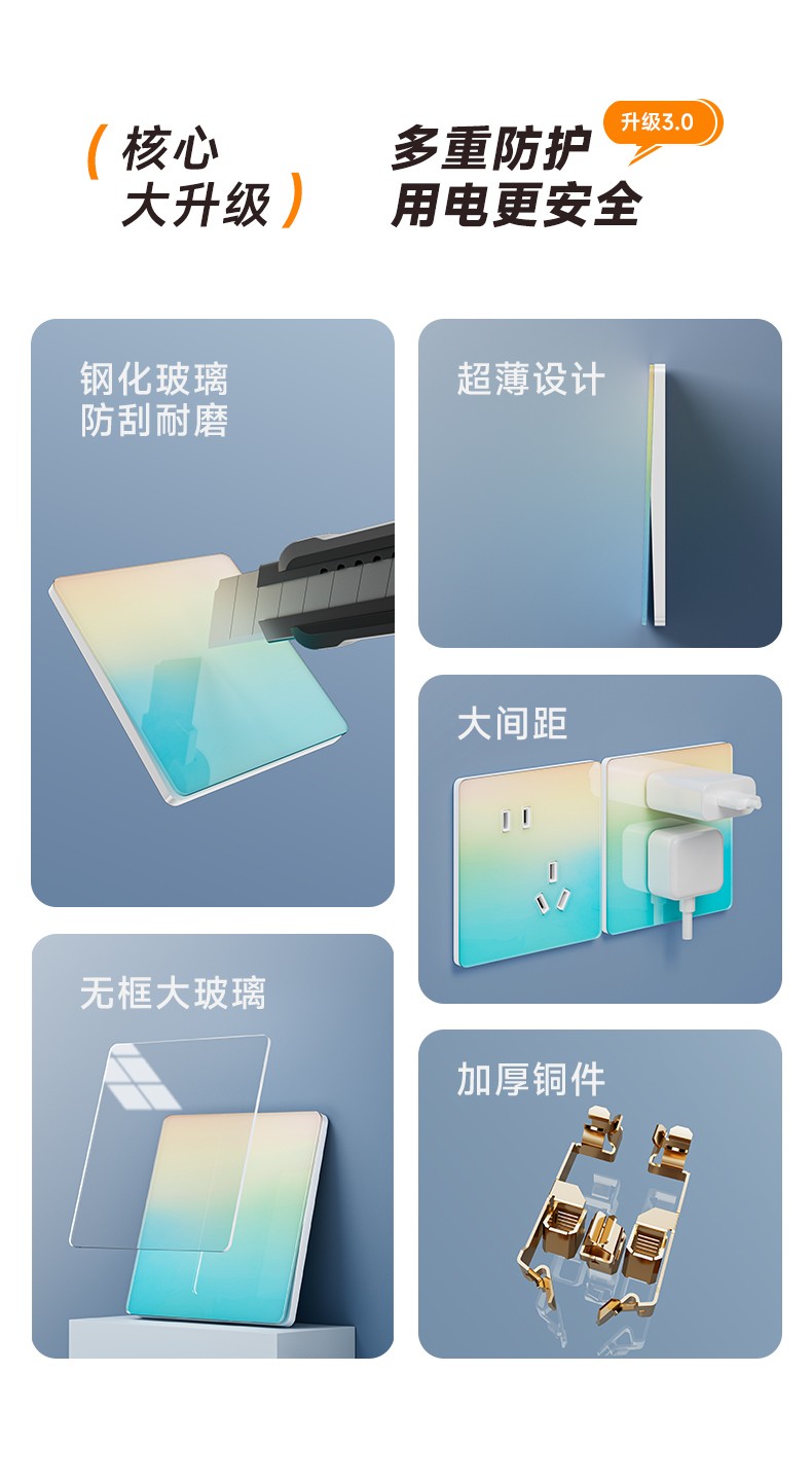 L51黄蓝渐变玻璃开关