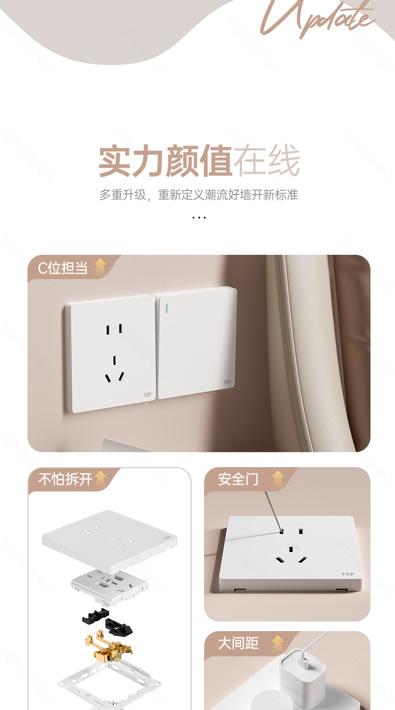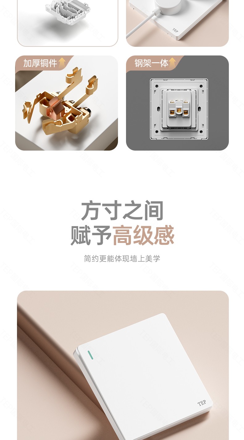 厚板哑光磨砂白开关 一体化钢架设计 安全阻燃大面板 颜值好出众 定义美学 把家装出精致感 C位担当 实力颜值在线 多重升级,重新定义潮流好墙开新标准