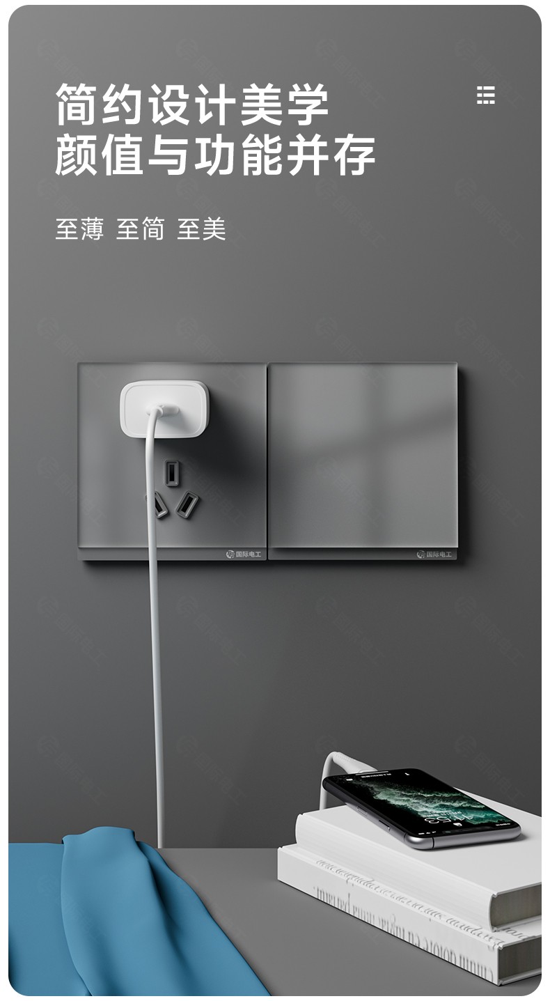 V26钢化玻璃肤感磨砂超薄开关 至薄 至简 至美 磨砂钢化玻璃肤感材质 超薄设计 无框大面板 面板错位设计 加厚铜件
