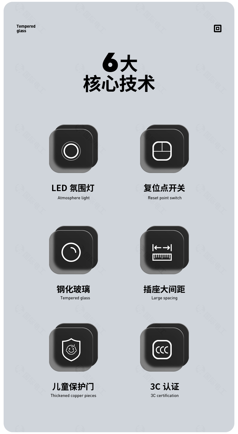 无框钢化玻璃复位点开关 氛围开关 大间距智能复位 6大核心技术 LED 氛围灯 复位点开关 钢化玻璃 儿童保护门 插座大间距 3C 认证