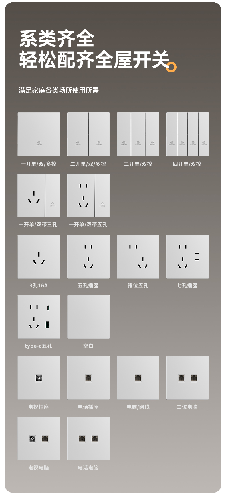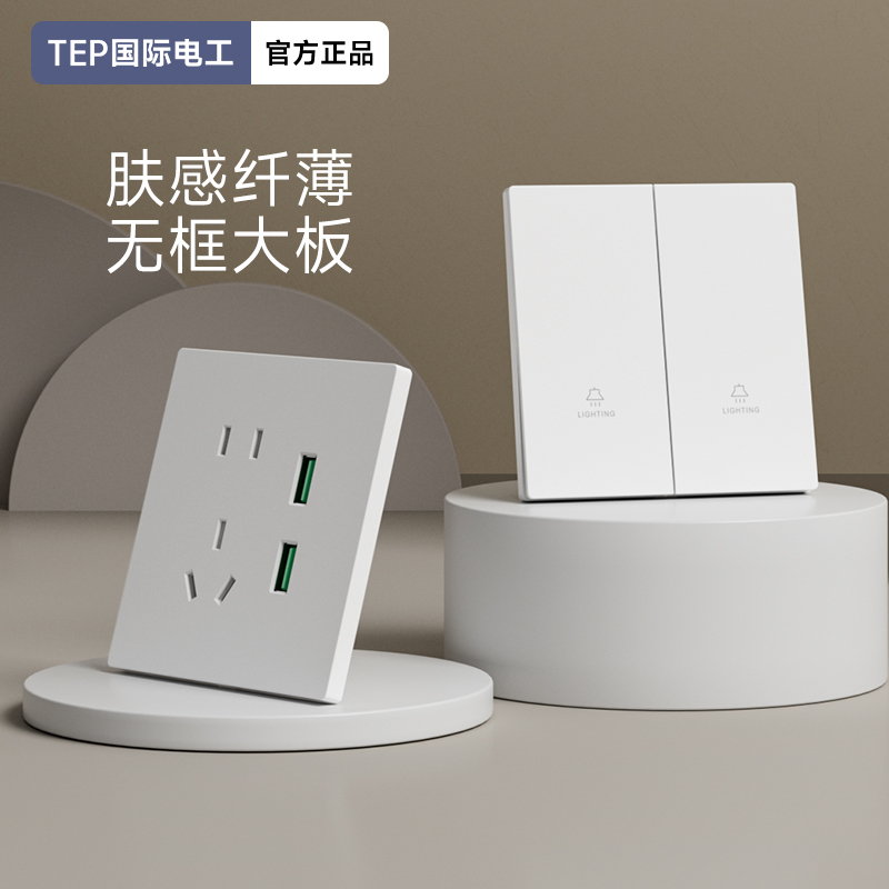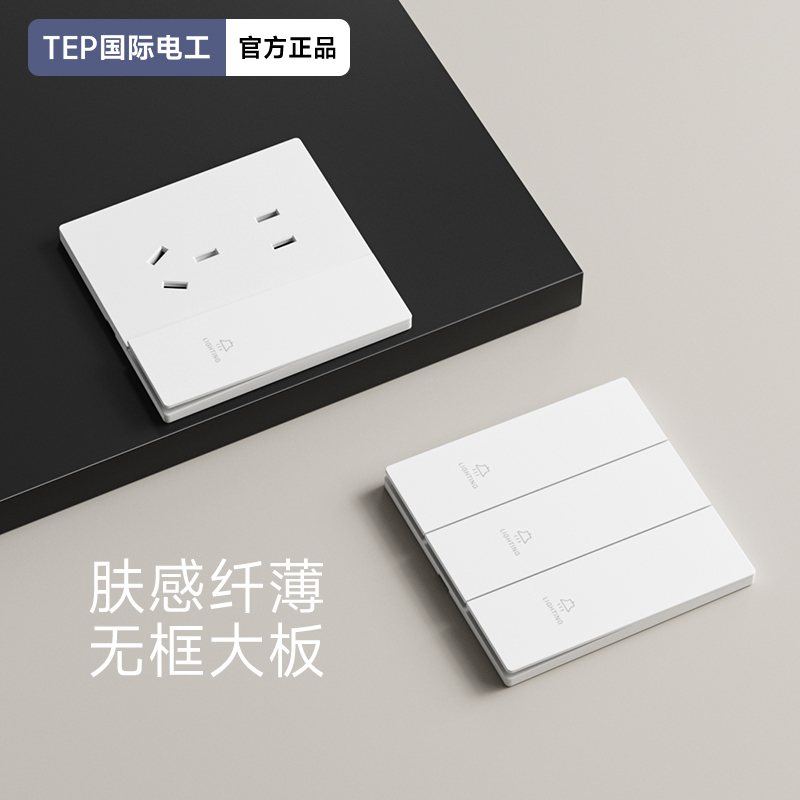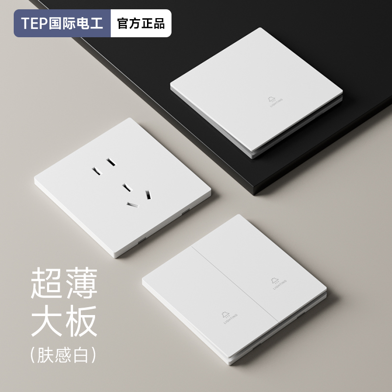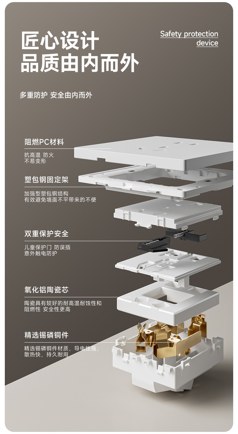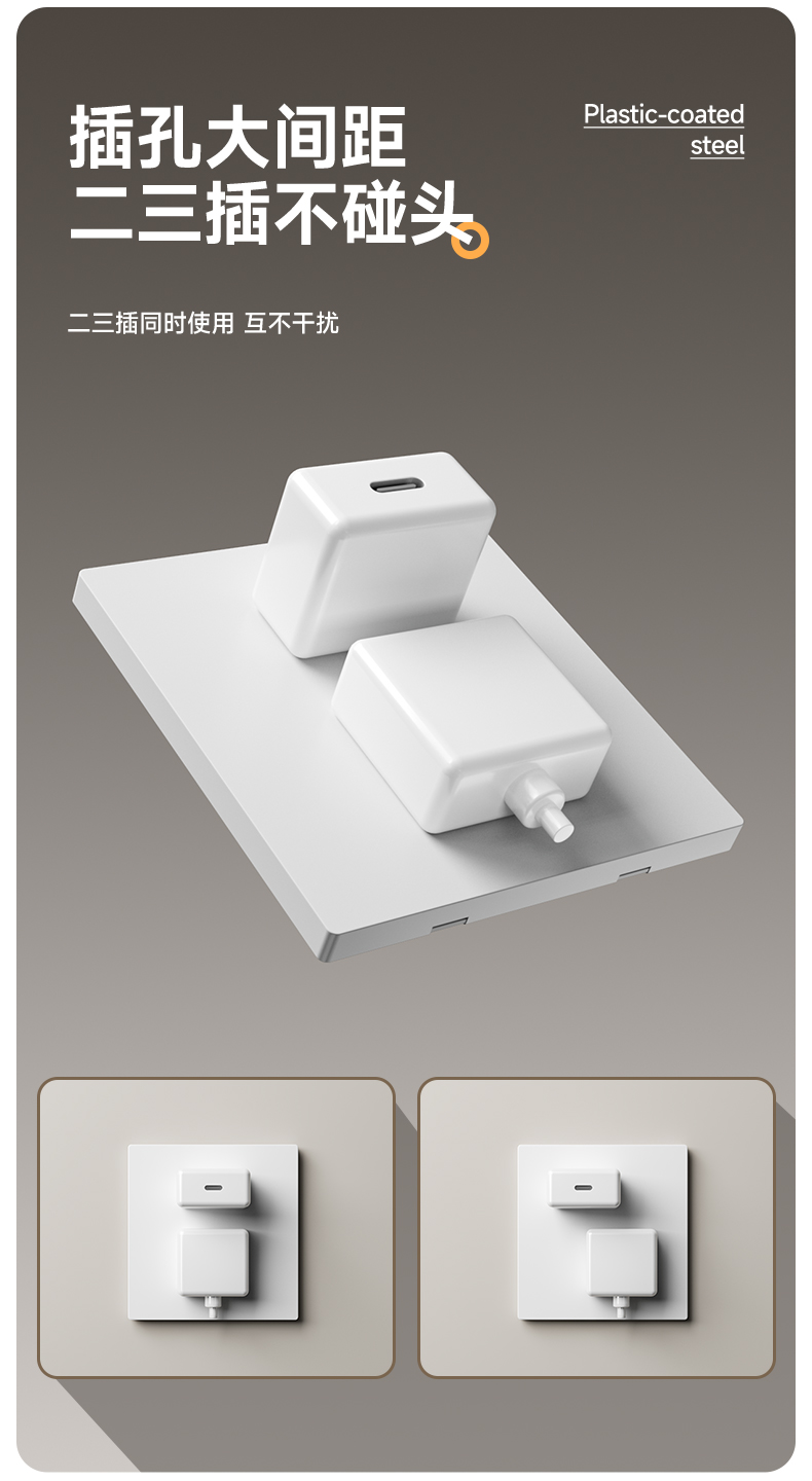 T81超薄肤感塑包钢开关 表面肤感膜皮工艺设计手感顺滑、指纹手汗不易残留、污渍一擦即净净 塑包钢固定架美观兼顾耐用 陶瓷芯后座 加厚优质铜 6.5mm超薄厚度 五孔大间距