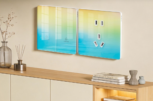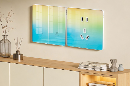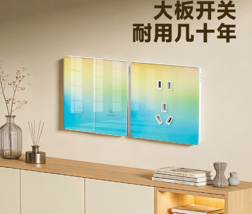 家里开关单调?TEP黄蓝渐变钢化玻璃开关——让墙面变成艺术品,安全颜值并存