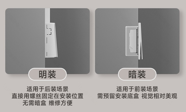 什么是明装开关面板?先来个形象比喻:明装开关就像“贴在墙上的小脸盆”,突出墙面;而暗装则是“藏进墙里的隐形侠”,表面平齐。明装面板通常用螺丝直接固定在墙体上,不破坏原