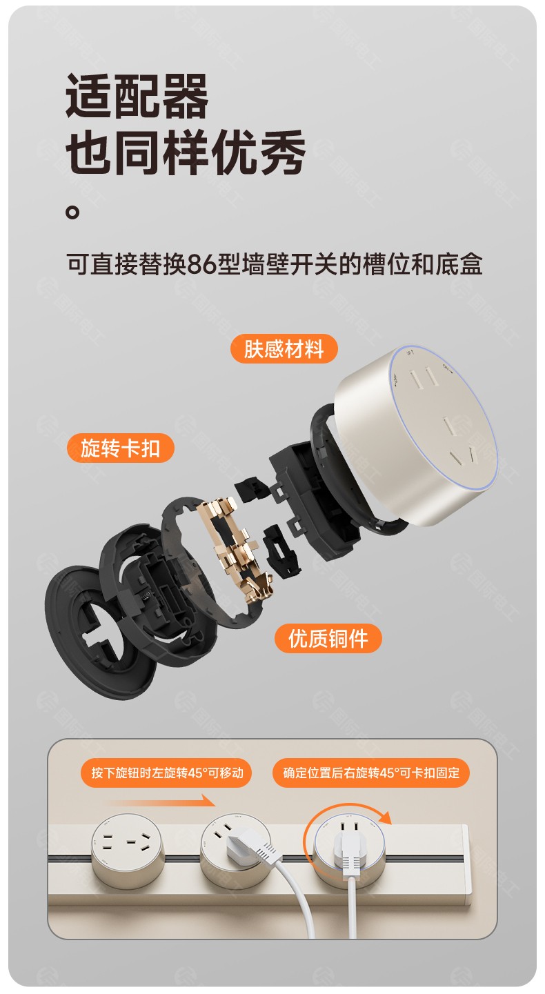 电力轨道插座 可移动轨道插座 右转通电 左转断电 8000W大功率 适配USB+type-c 加粗铜芯