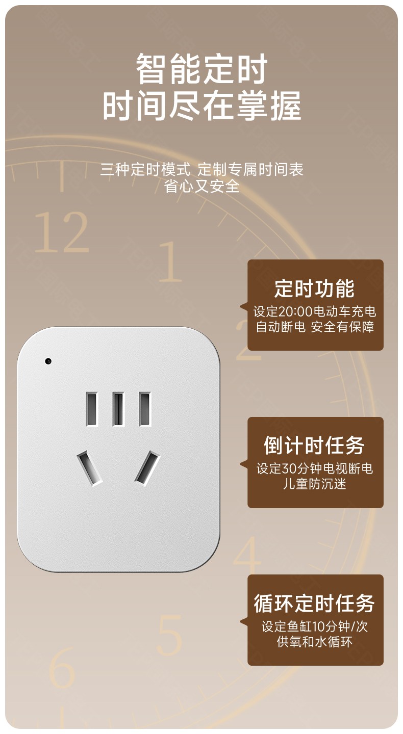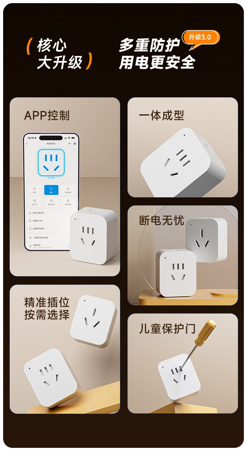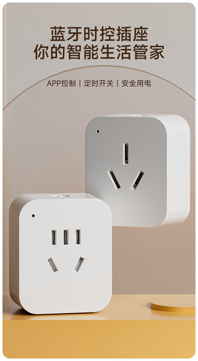 蓝牙时控插座你的智能生活管家 APP控制|定时开关|安全用电 APP控制 一体成型 精准插位按需选择 断电无忧