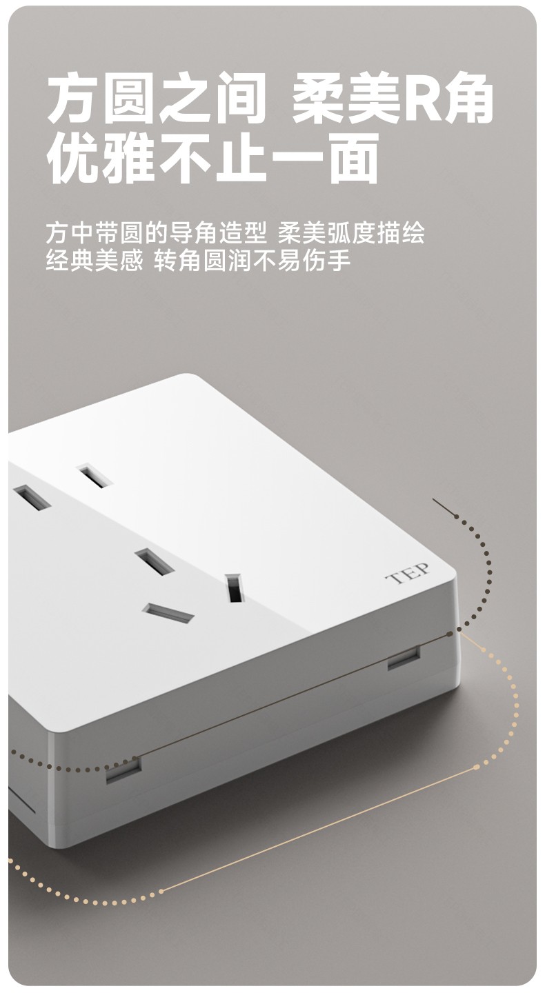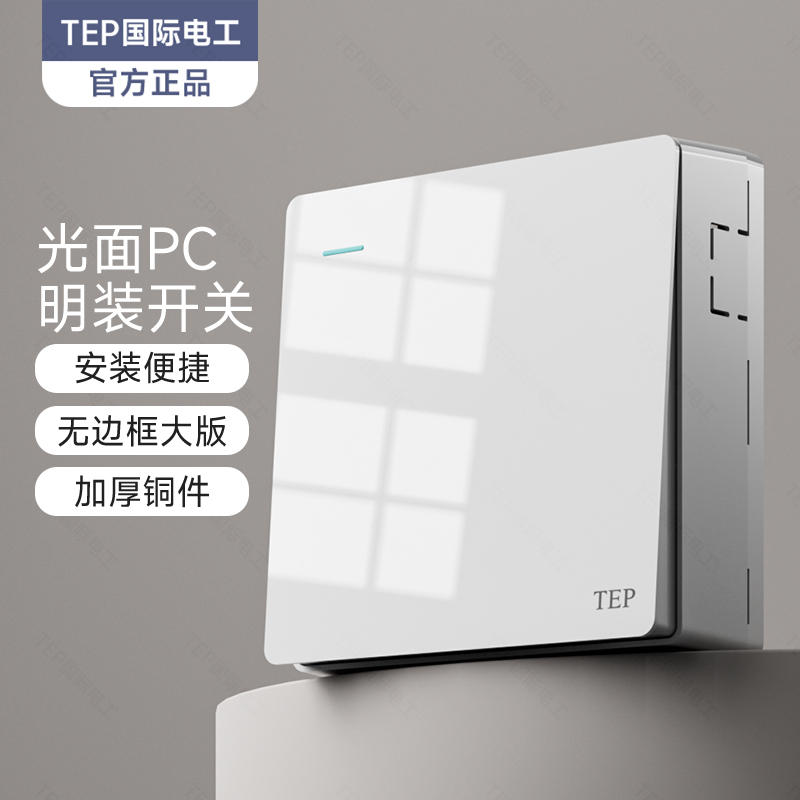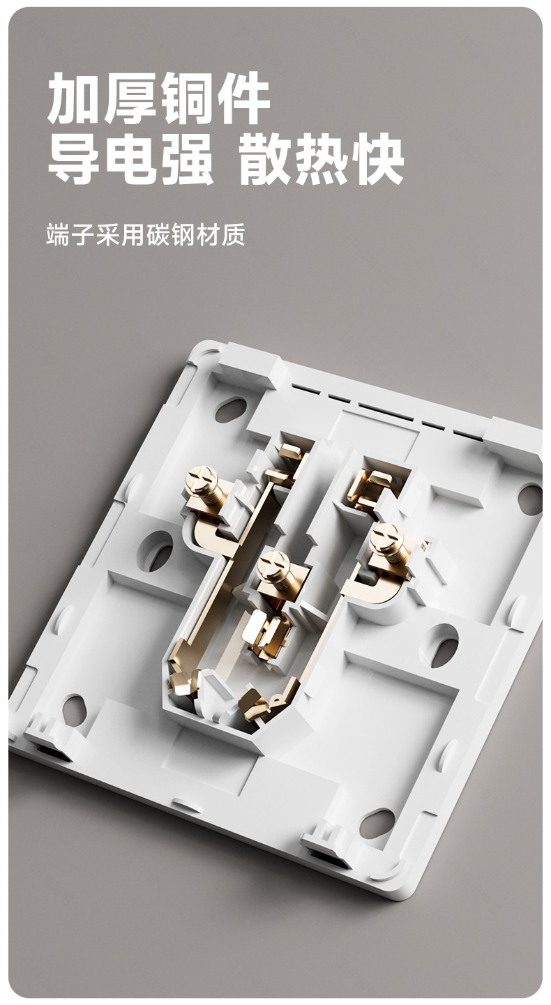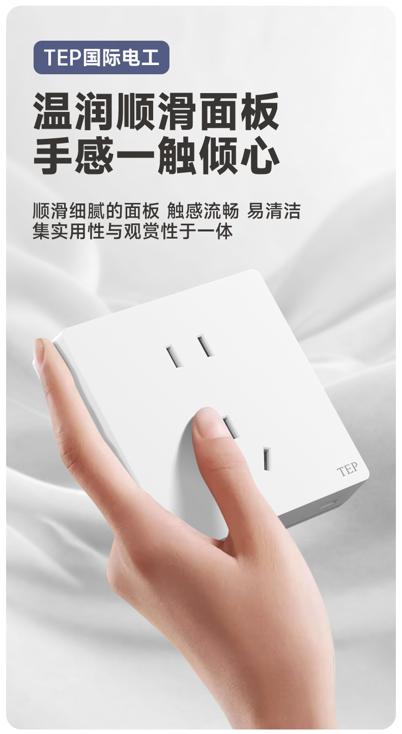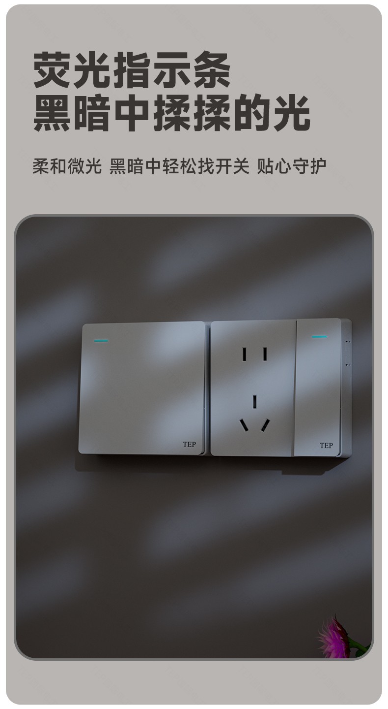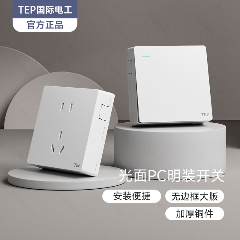 M12光面PC明装大板开关 无需开槽 无需底盒 无需埋线 核心大升级 多规格进线口 按需开口 40mm大间距插座 夜晚荧光 指示灯 内部接线空间超大 儿童保护单边无法插入