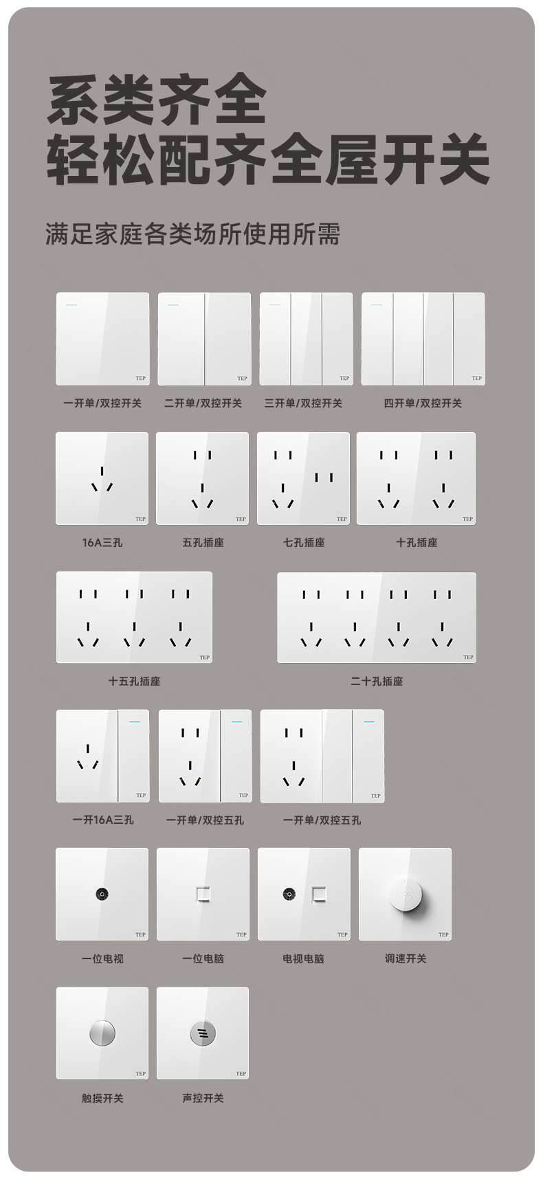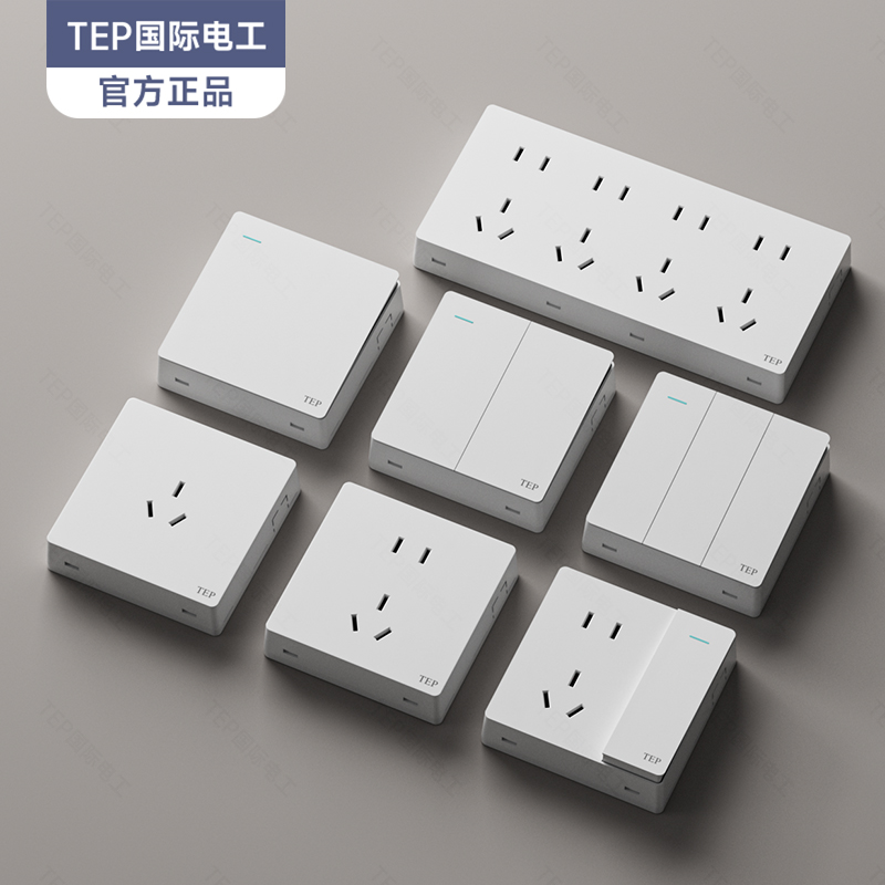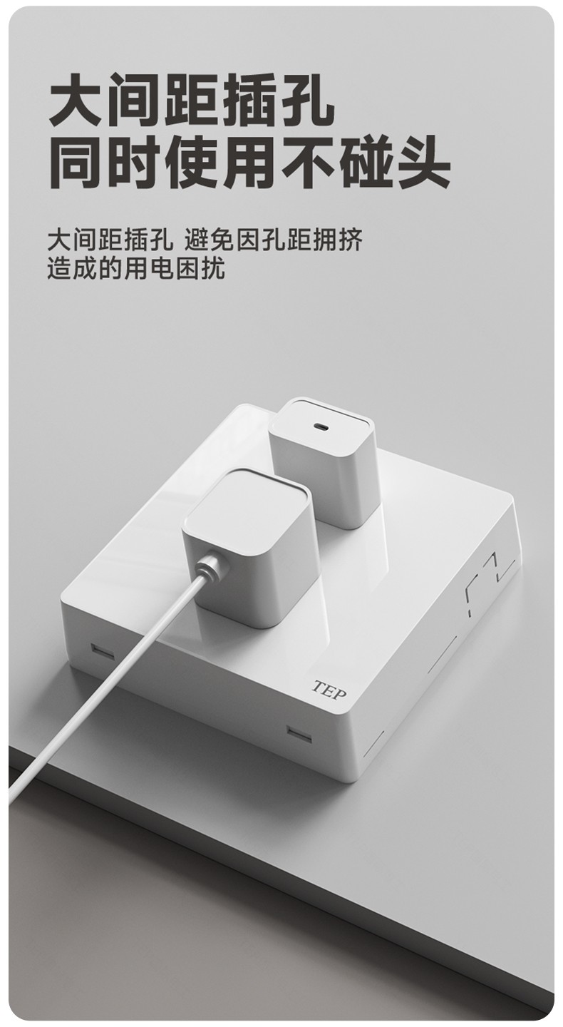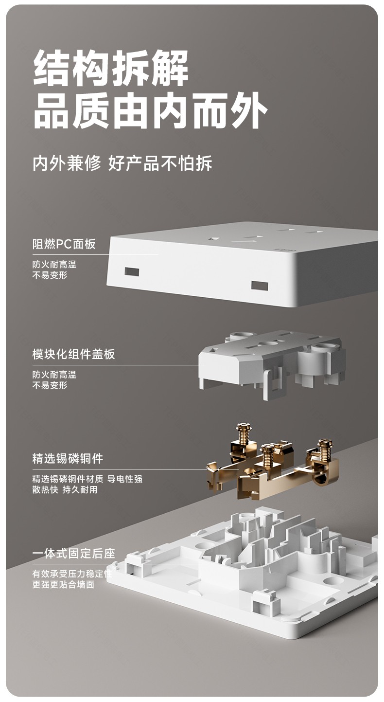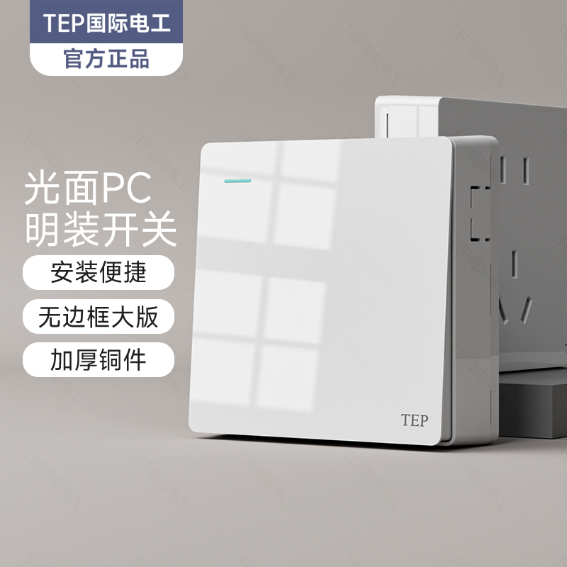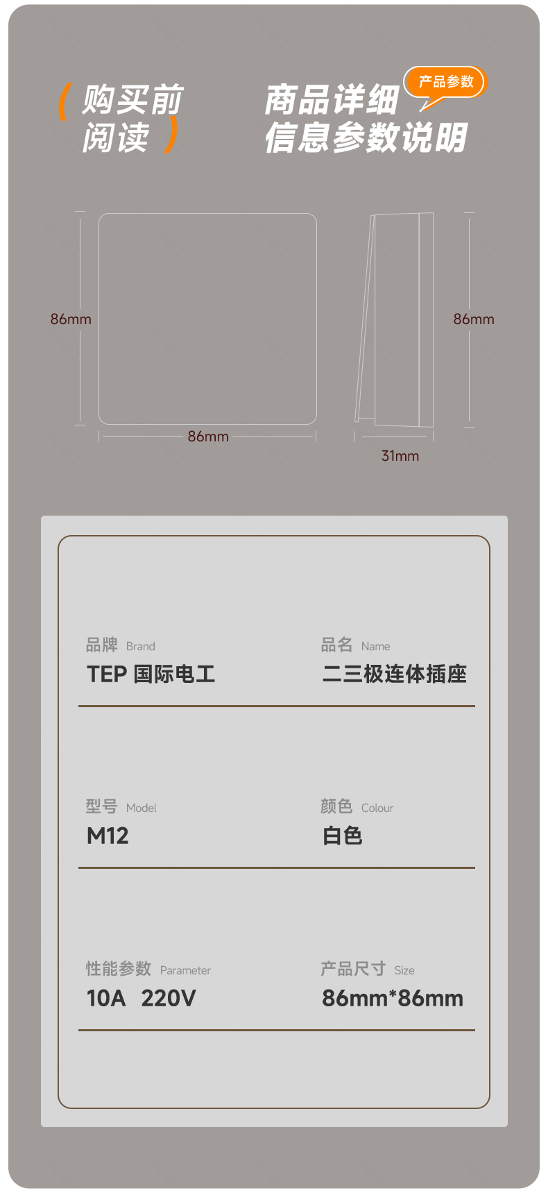 M12光面PC明装大板开关 无需开槽 无需底盒 无需埋线 核心大升级 多规格进线口 按需开口 40mm大间距插座 夜晚荧光 指示灯 内部接线空间超大 儿童保护单边无法插入