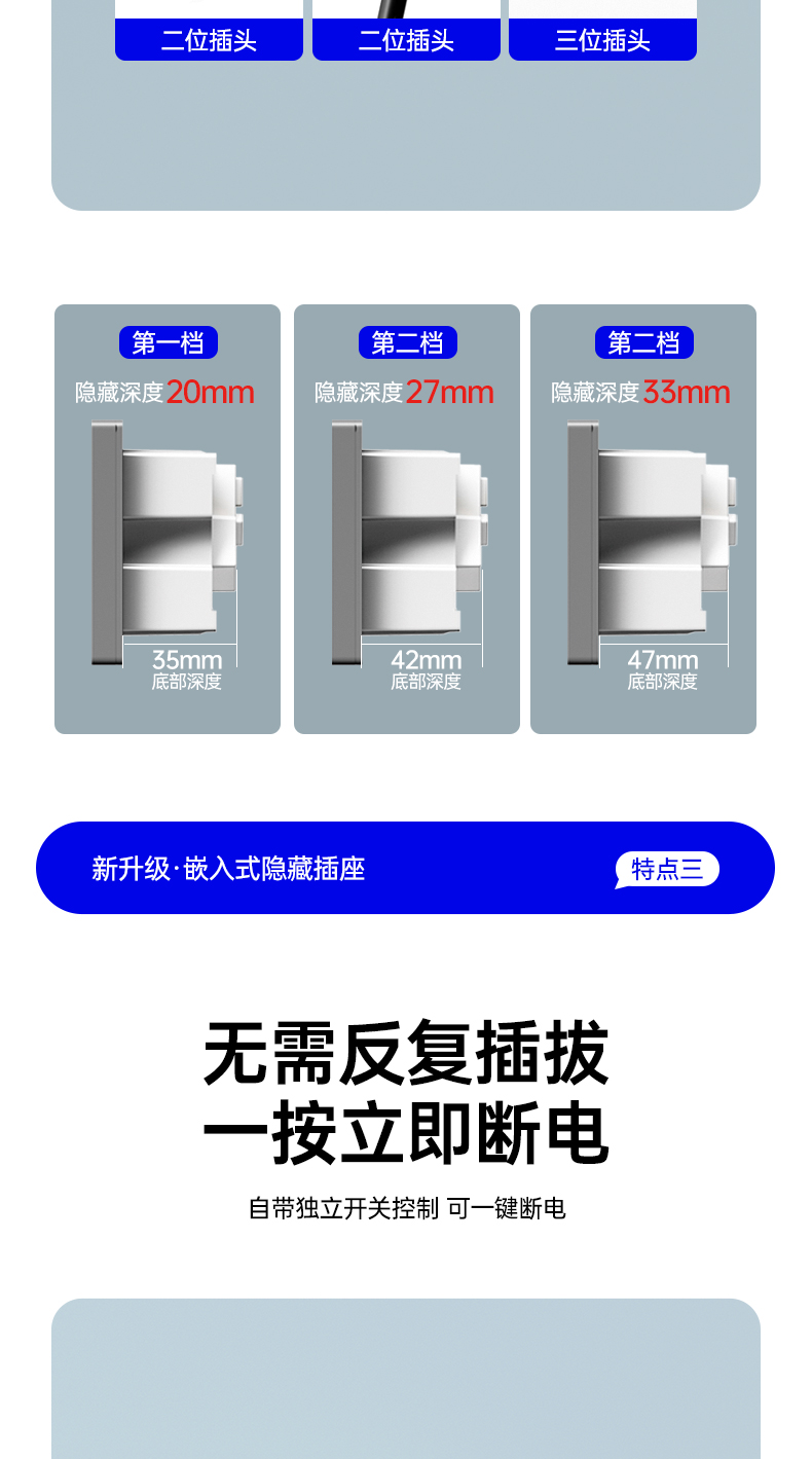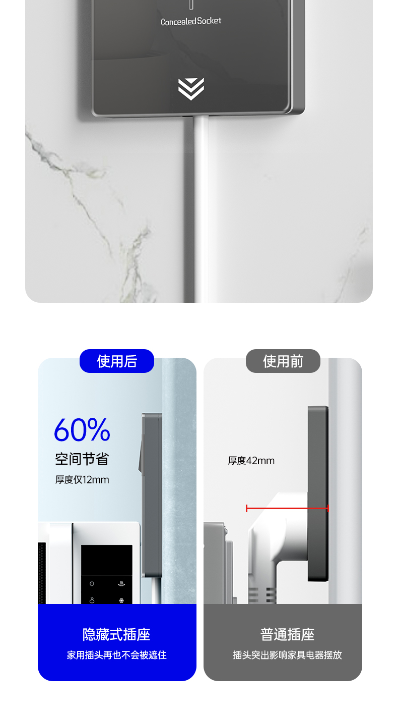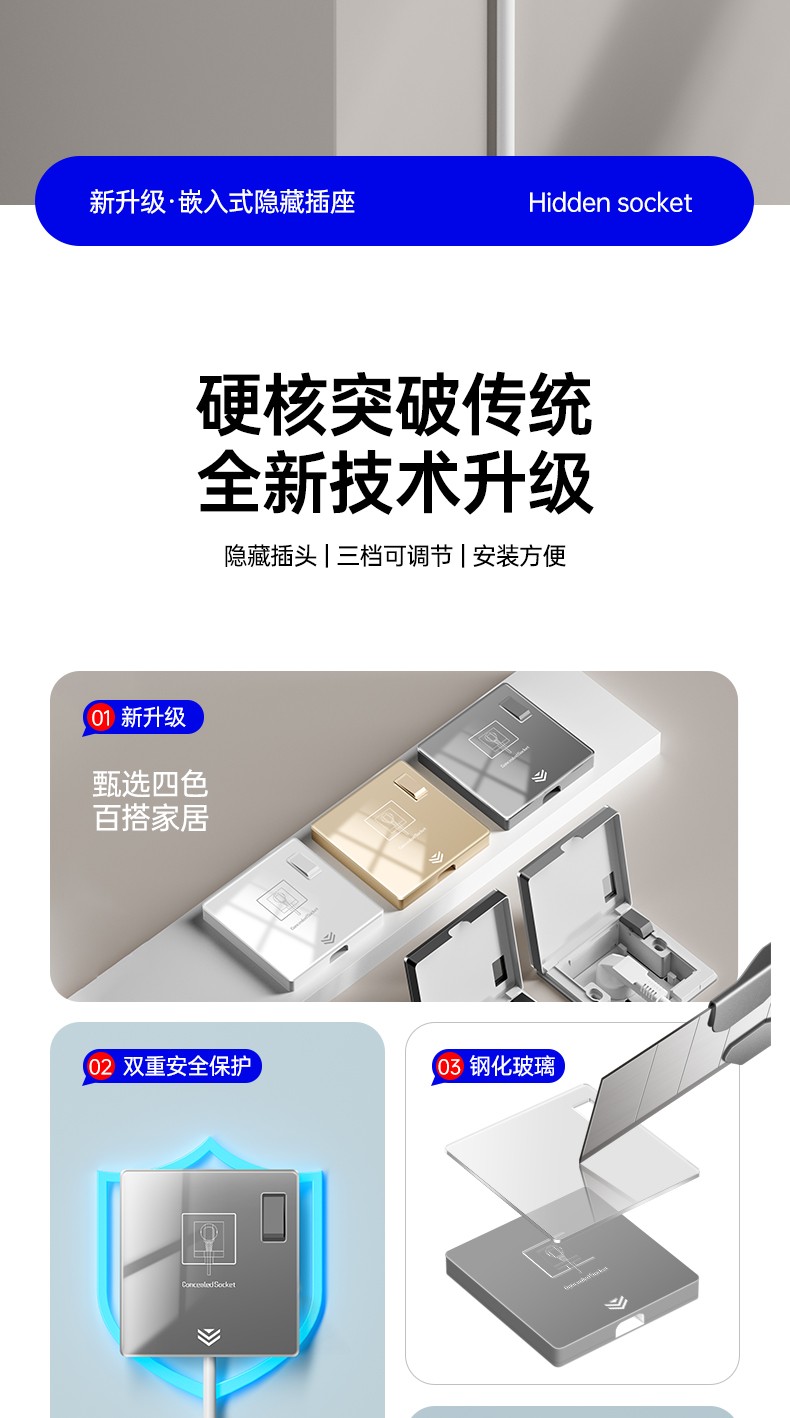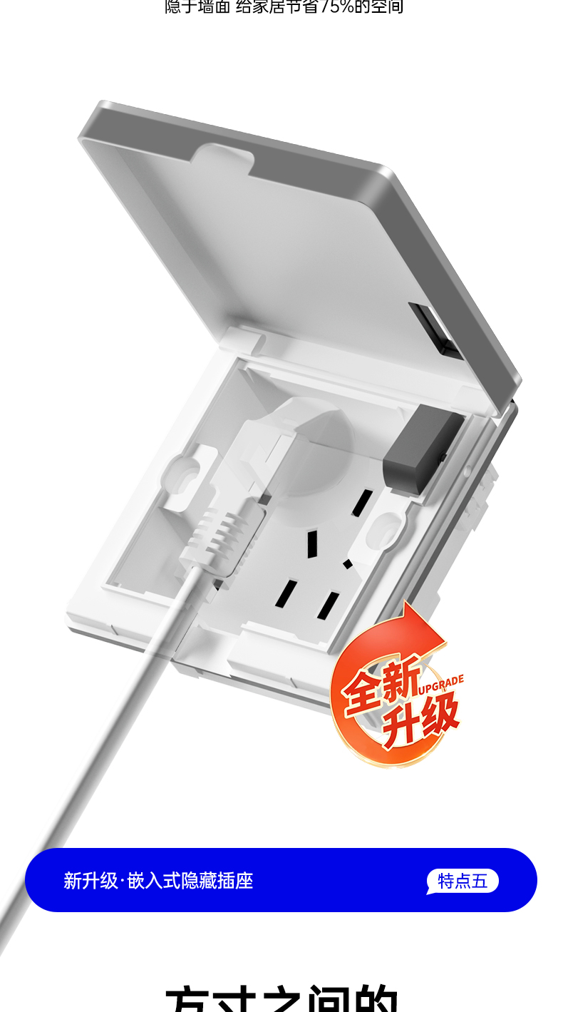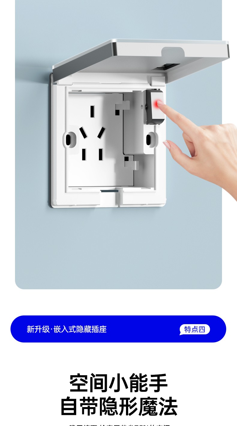 家居用电新美学 嵌入式隐藏插座·插头不占空间 硬核突破传统全新技术升级 隐藏插头|三档可调节|安装方便