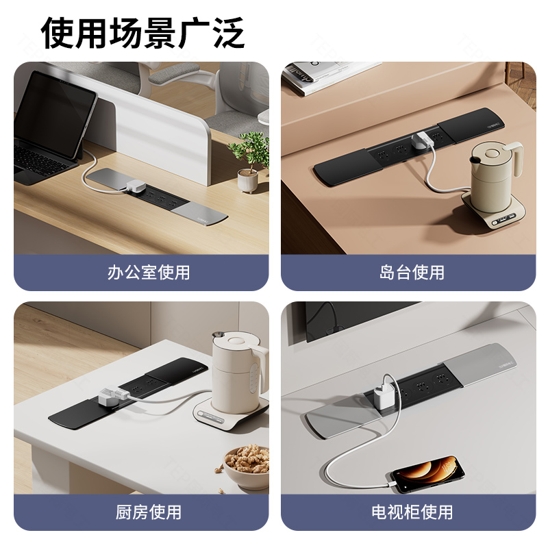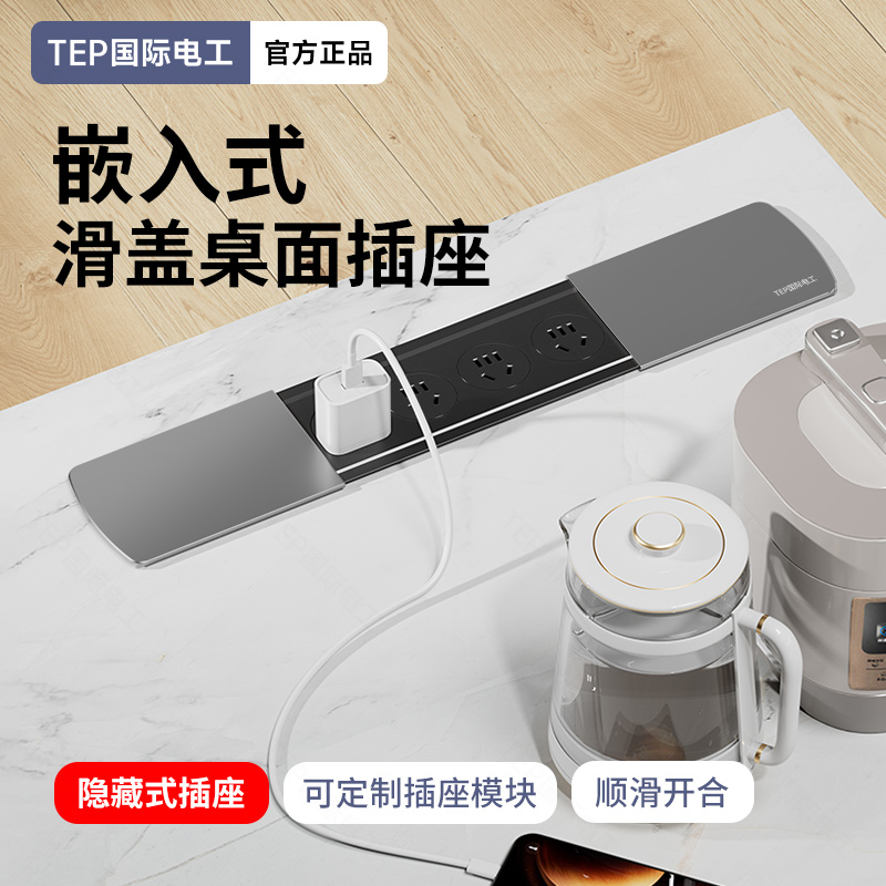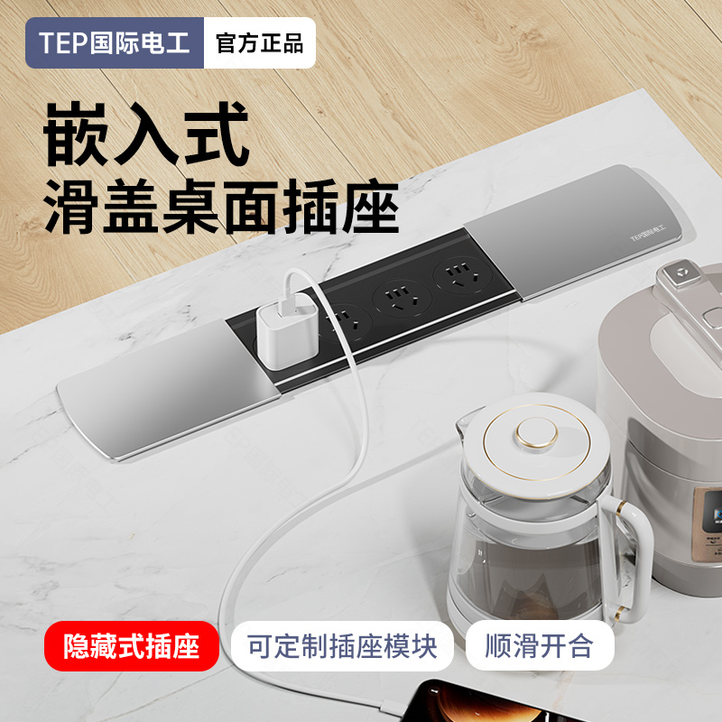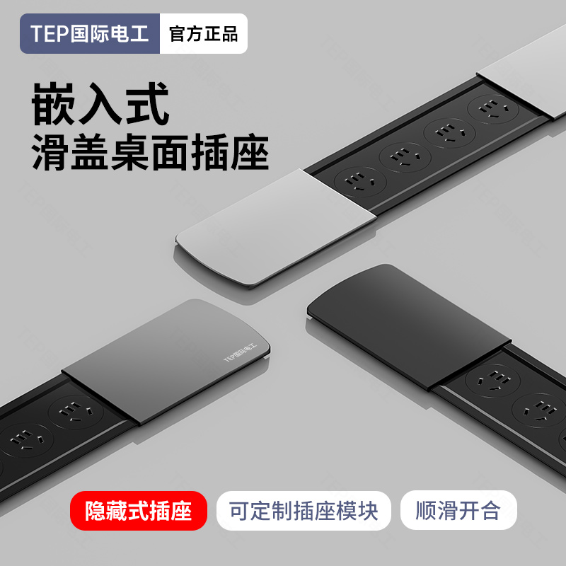 嵌入式滑盖桌面插座 顺滑开合|铝合金材质|隐藏式插座 贴合桌面 更美观向笨重插排说再见 超薄纯平隐藏式 2500W大功率 三色可选 双向滑盖开启 可定制电源模块