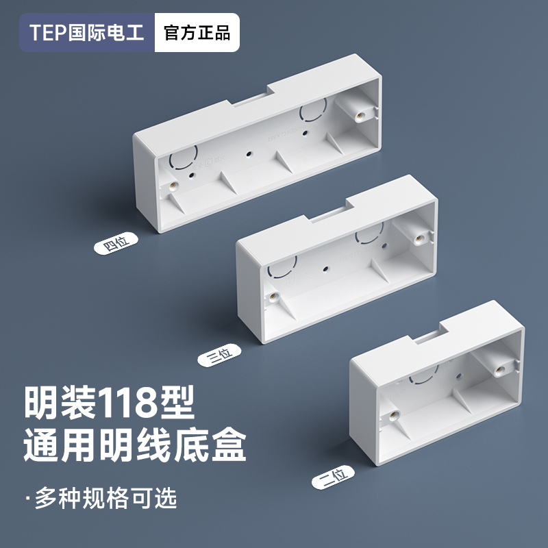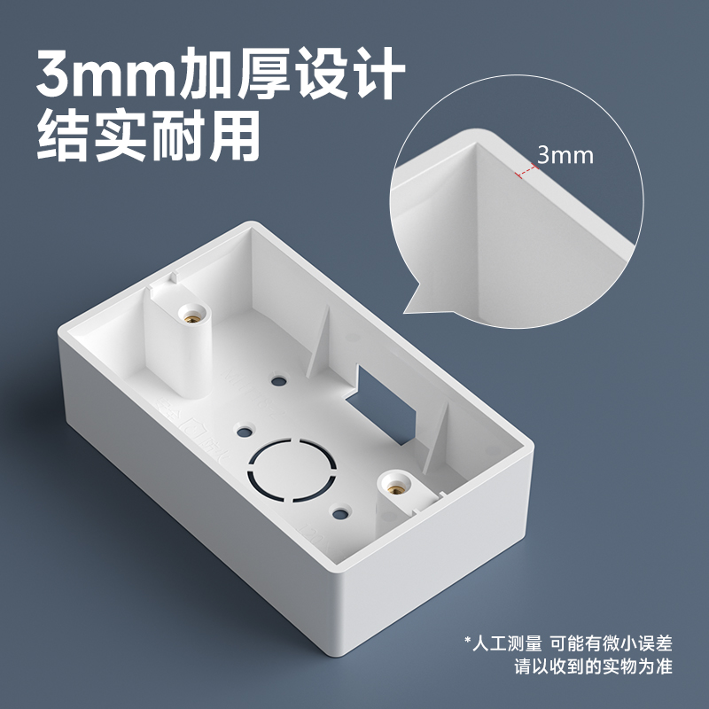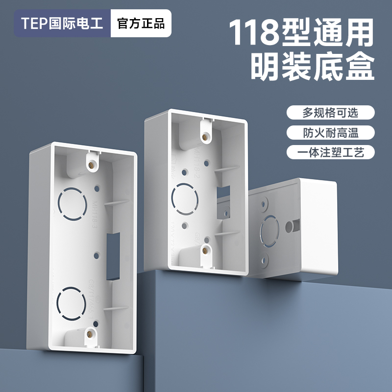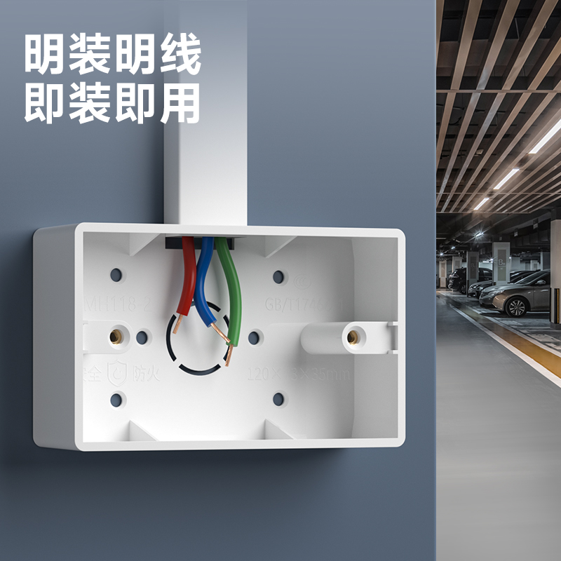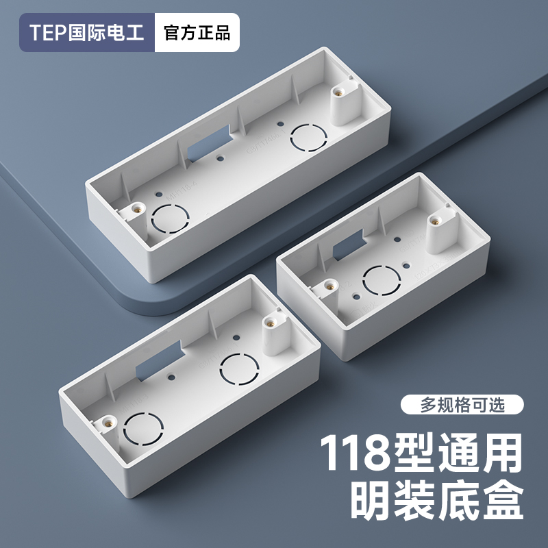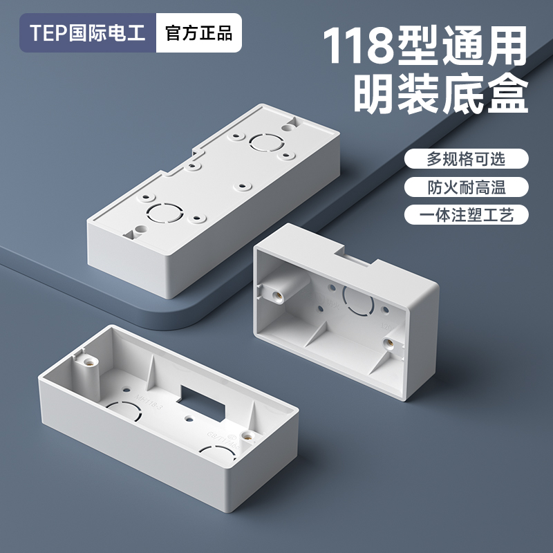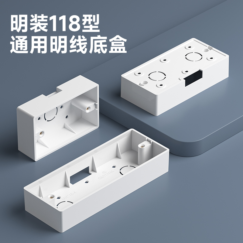 明装118型通用明线底盒 明装明线 升级抗压加厚设计 3mm加厚设计结实耐用 扎实厚度 强韧抗造 一体注塑工艺 可调节进线口 经久耐用 稳固不易变形 明装明线即装即用