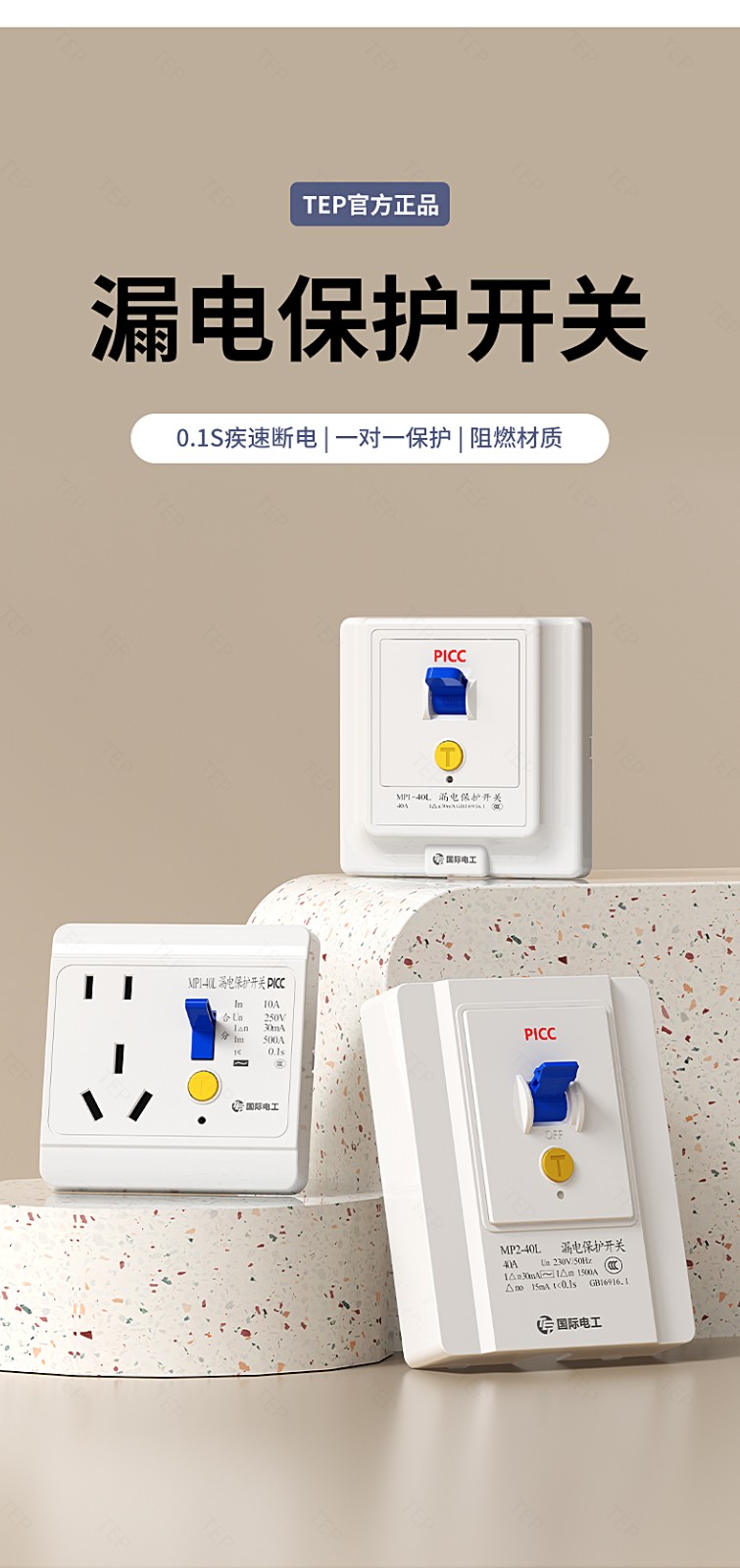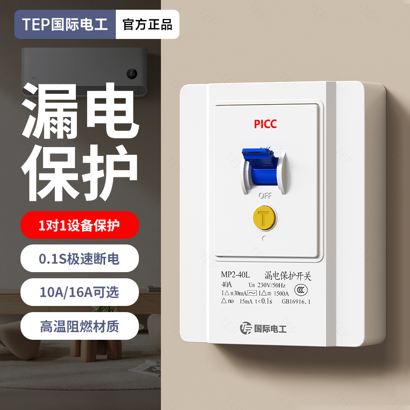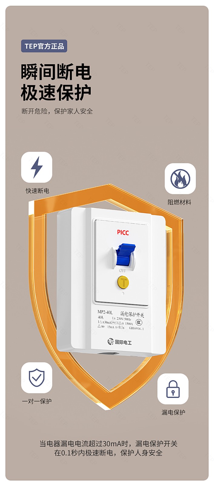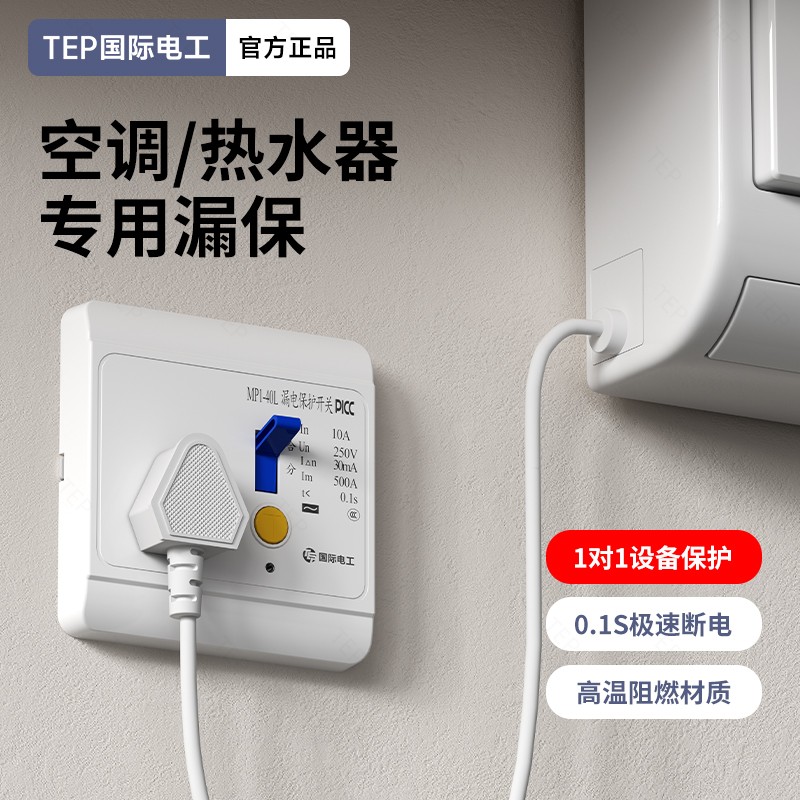 漏电保护开关 空调/热水器专用漏保 0.1S疾速断电|一对一保护|阻燃材质 瞬间断电极速保护 断开危险,保护家人安全