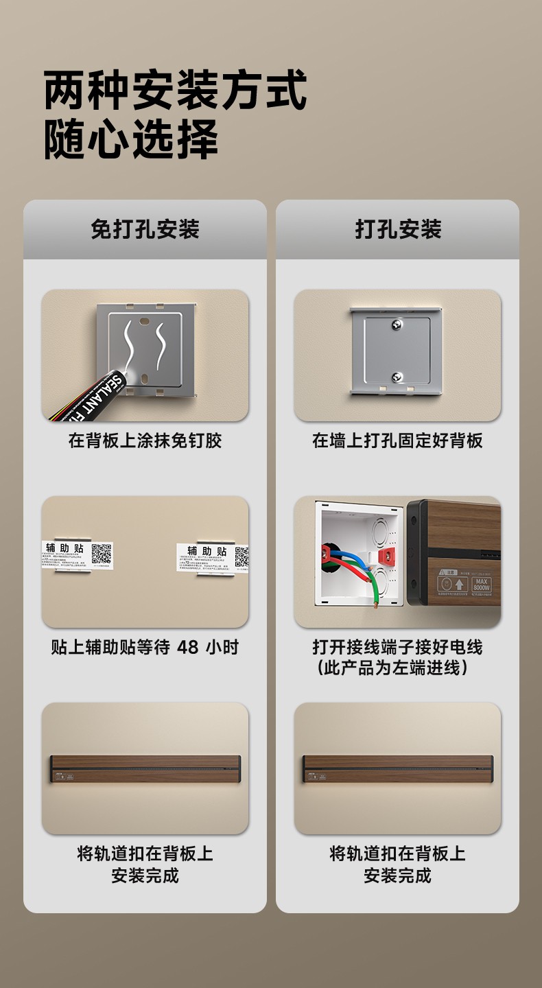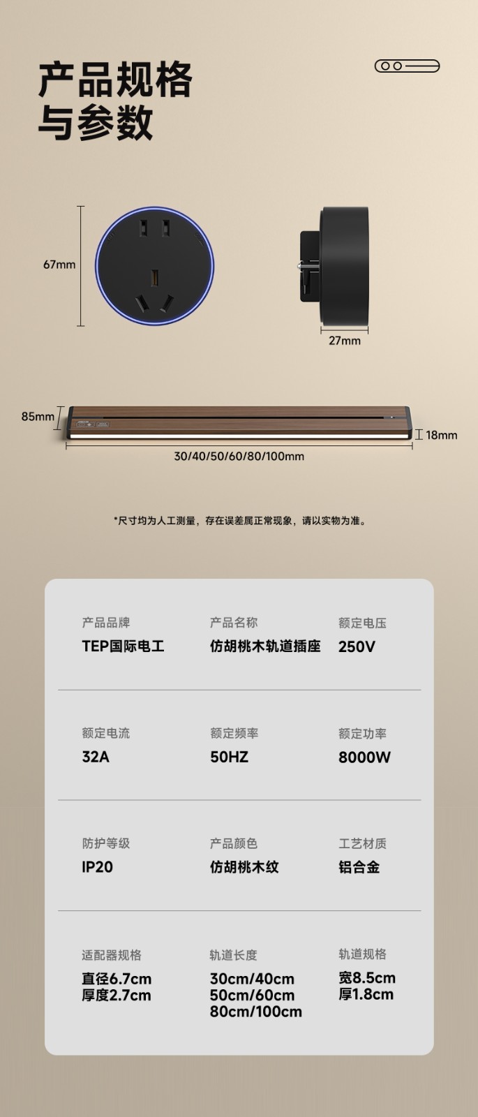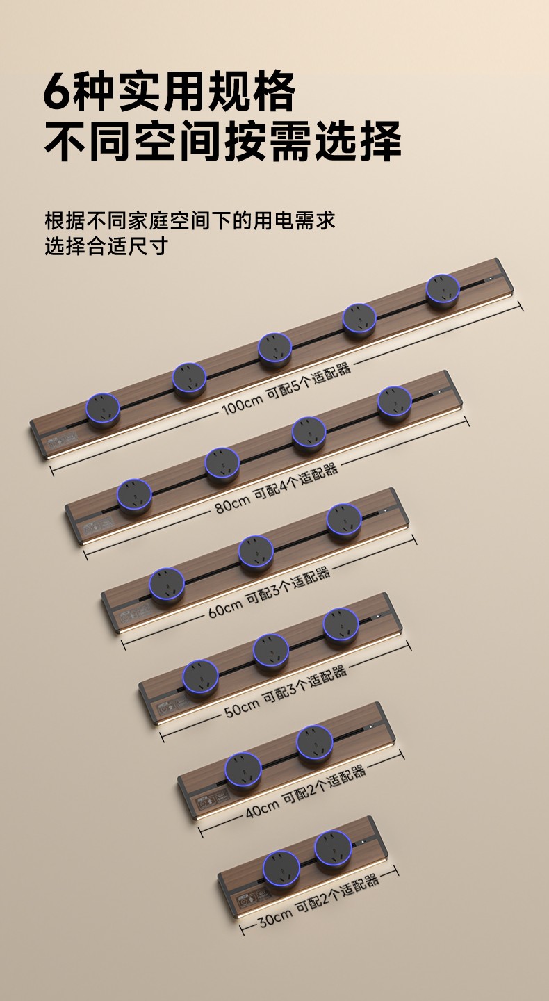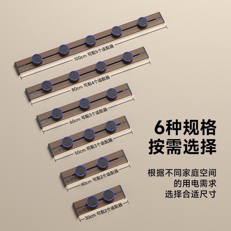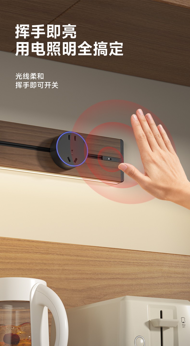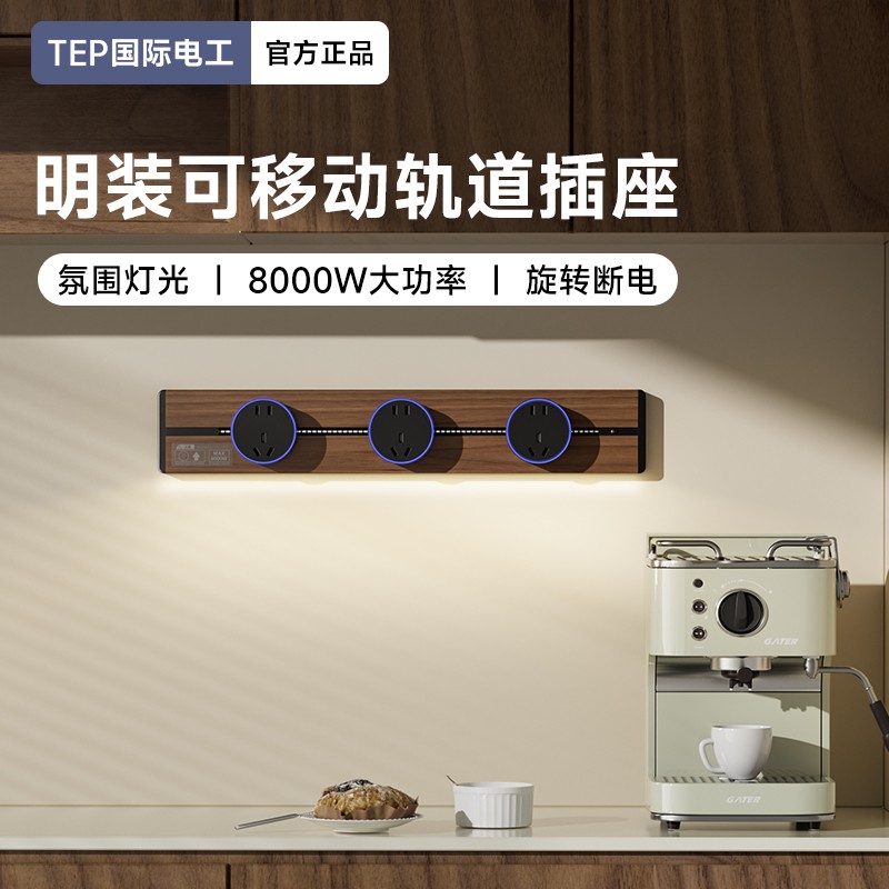胡桃木纹感应轨道插座(灯带款) 氛围灯光 |正面感应 |旋转断电 仿胡桃木纹感应灯带轨道插座 仿木纹铝制轨道 8000W大功率感应氛围灯 五孔大间距 让二、三插头和谐共处实现真正的高效用电