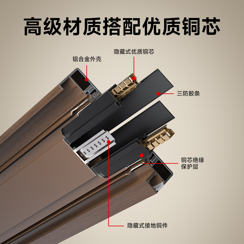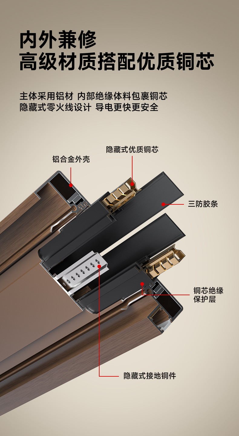 六代铝材木纹轨道插座