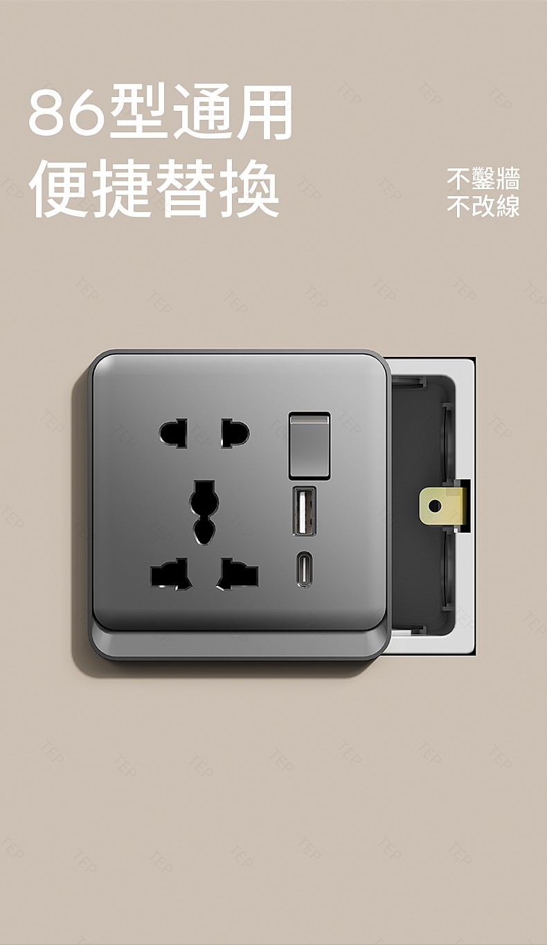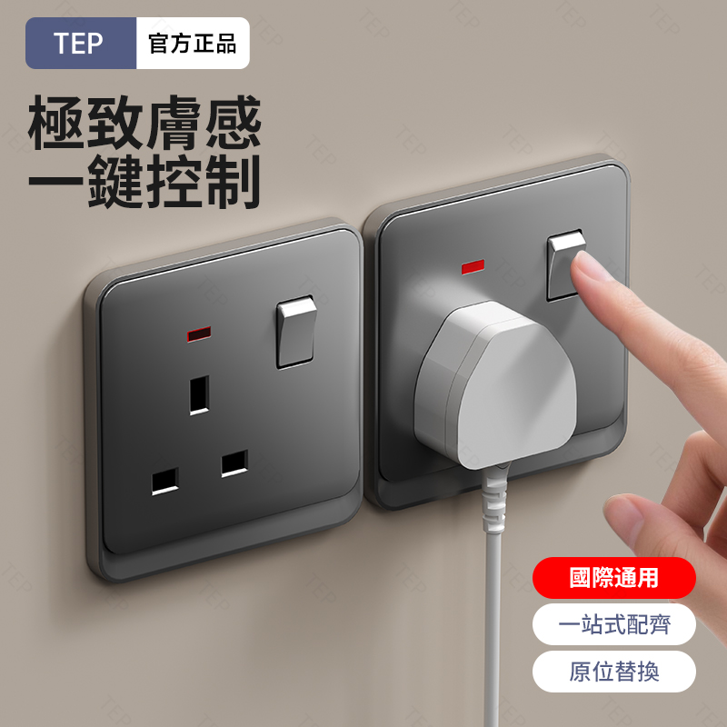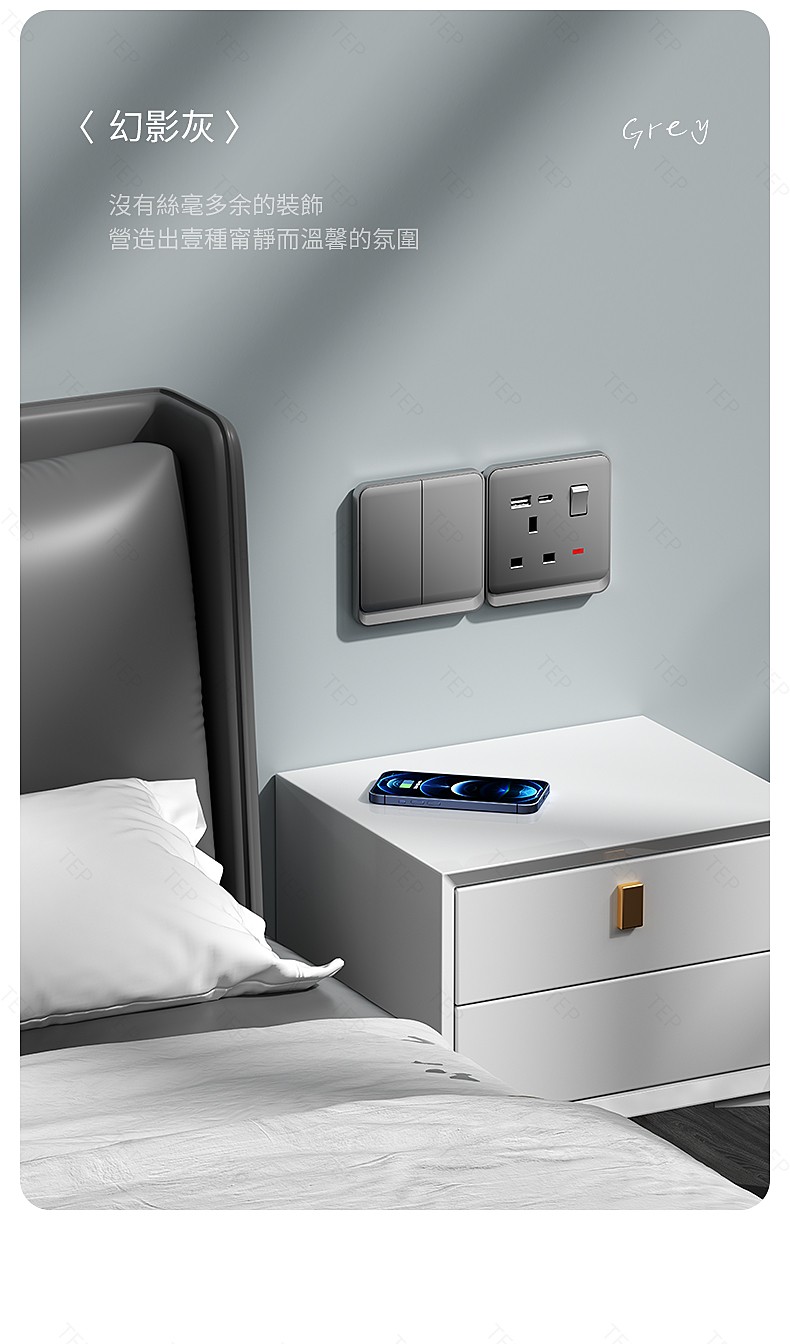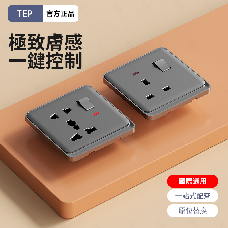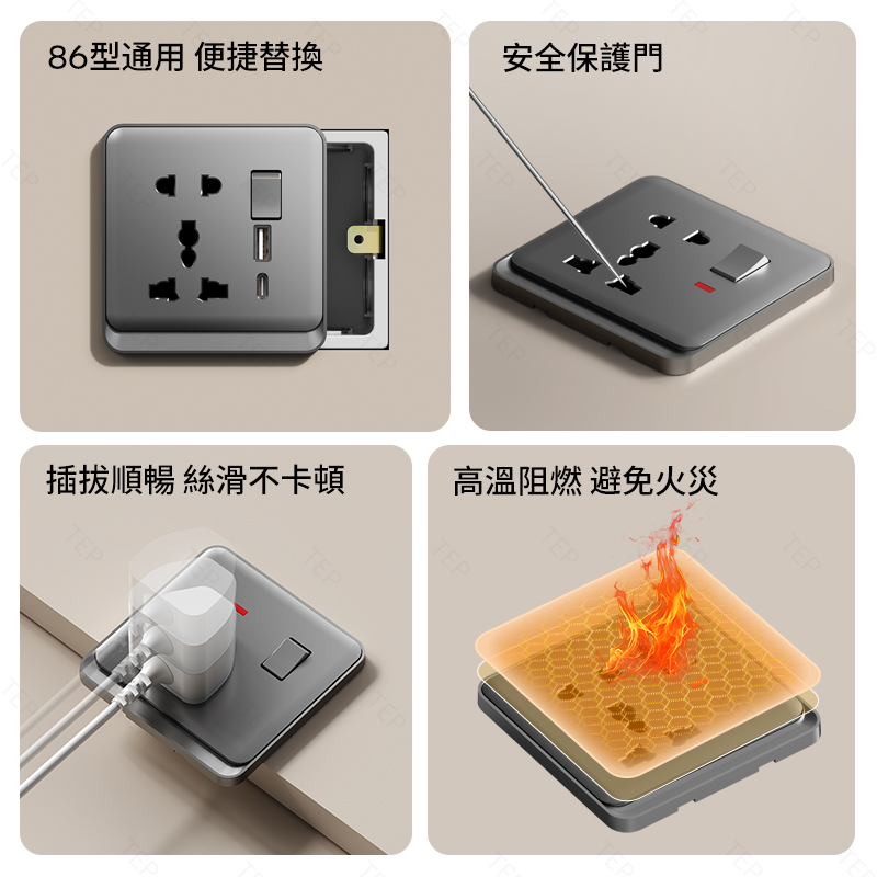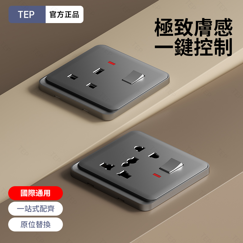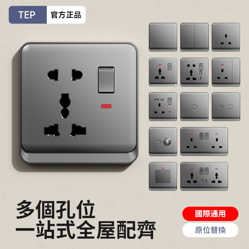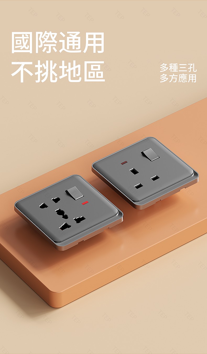 L6【PC膚感灰】開關插座膚感極致體驗 全球通用用電無憂 肤感灰 核心工藝 夠硬核 親膚手感 一鍵控制 才放心 超薄面板 安全保護門 款式多樣 一站式配齊