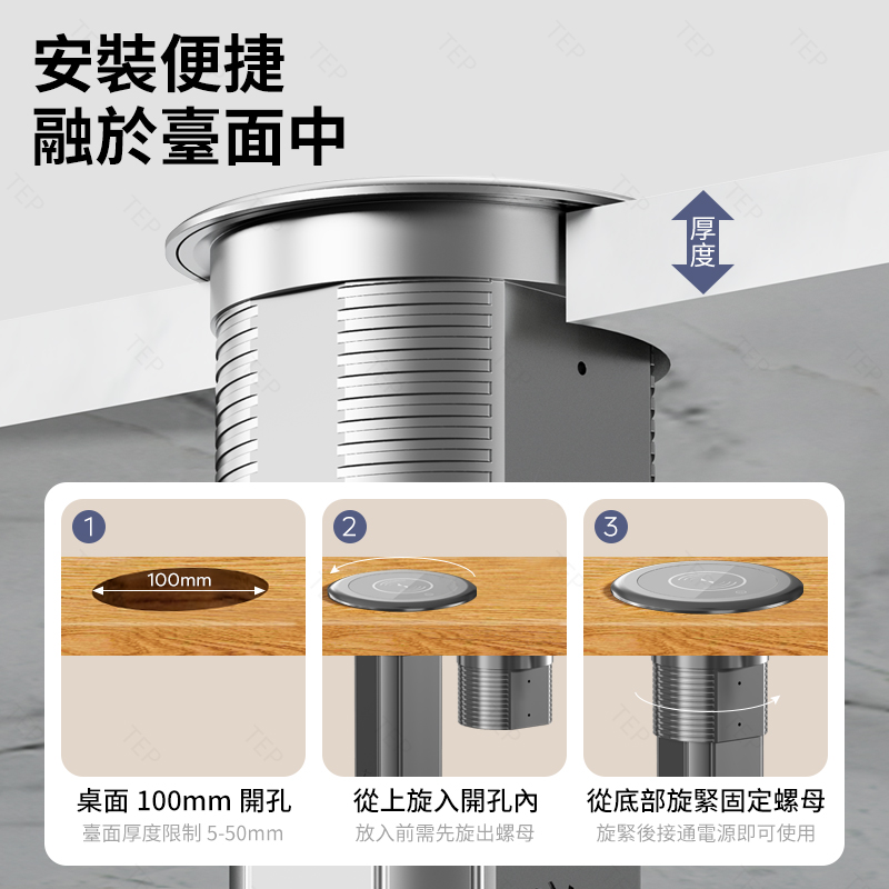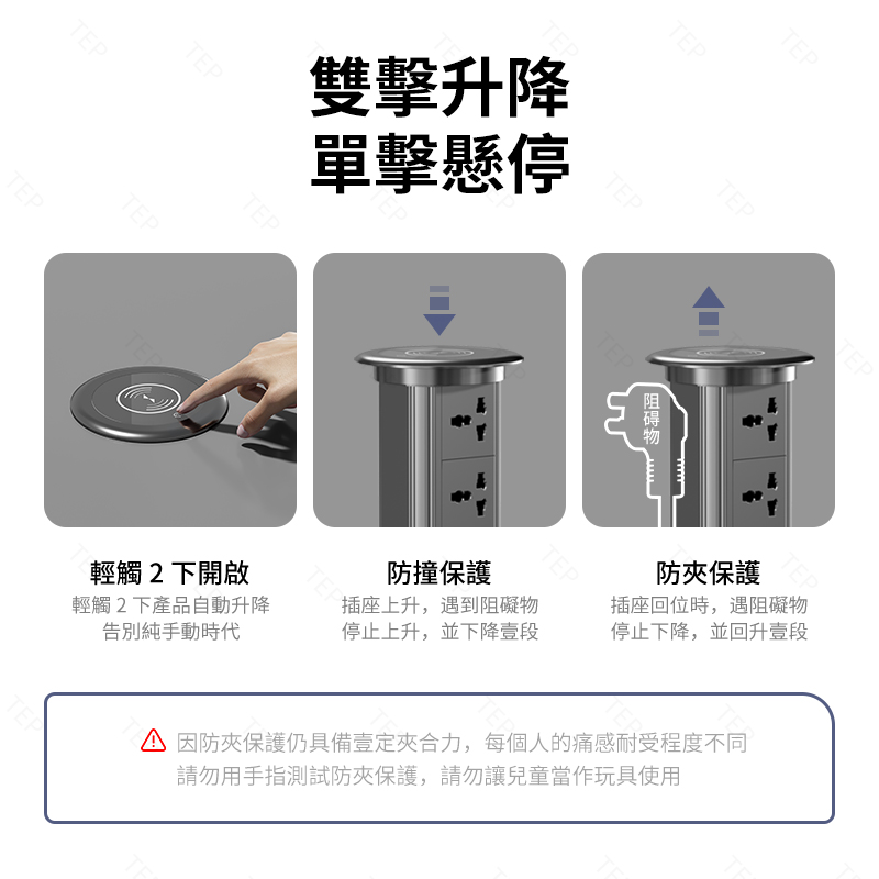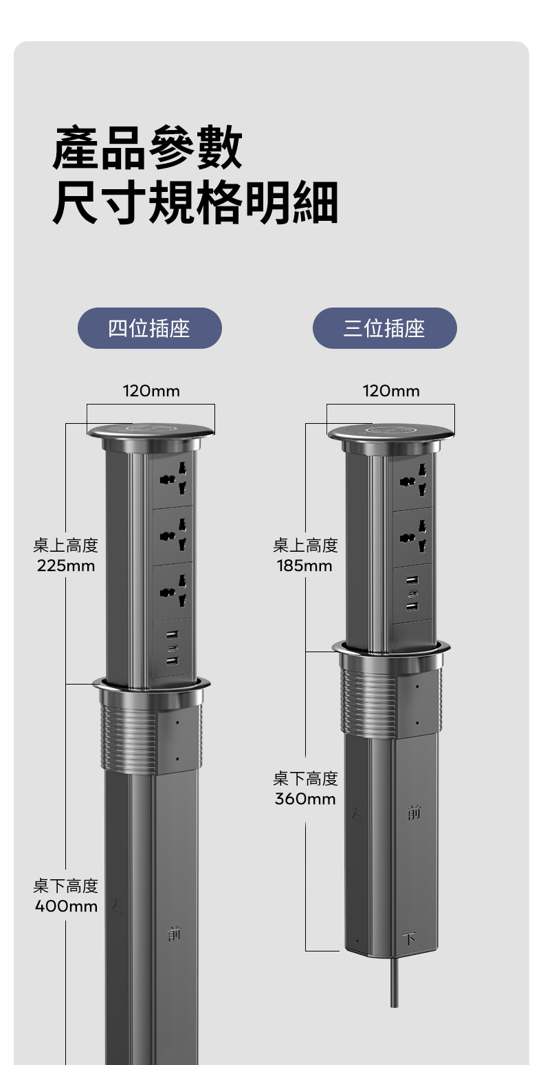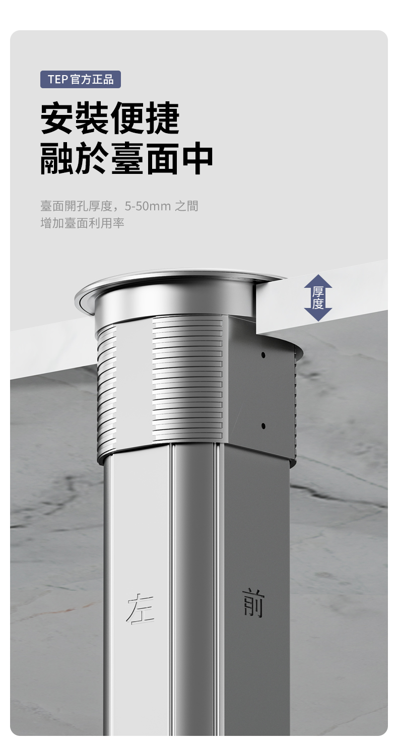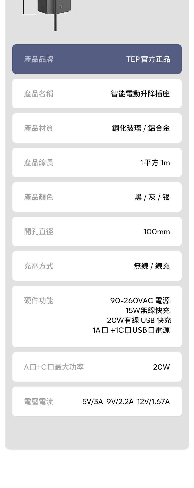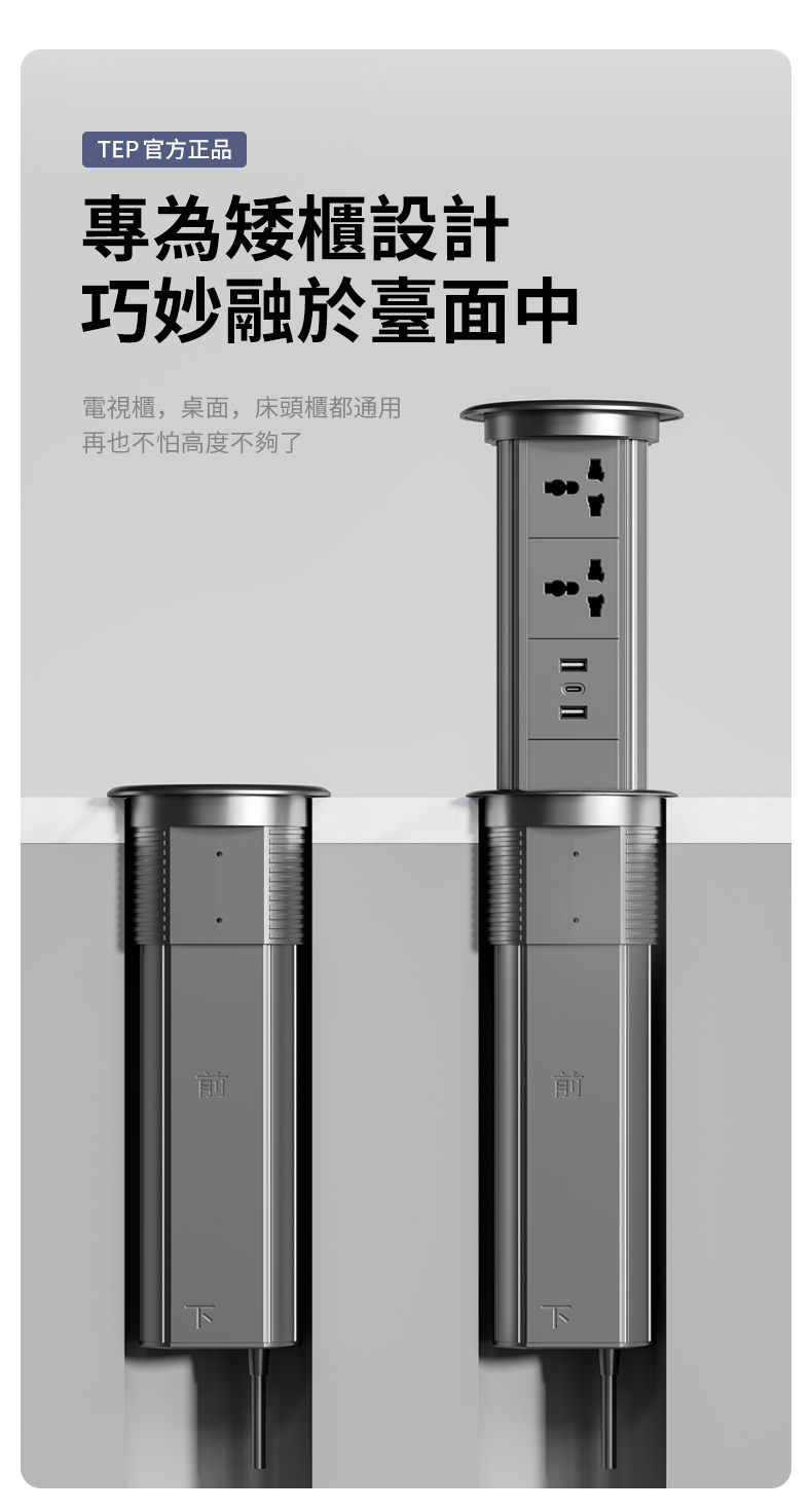 電動升降插座 高效充電智能保護 無線充電 輕觸開啟 無懼濺水 智能升降生活更美好 内置电动控制系统 手指轻触升降随心所控 可選插孔 國標五孔插座 歐式插座 美式三極扁插座 多功能三孔插座 泰式插座 A13方角插座 颜色:黑/灰/银