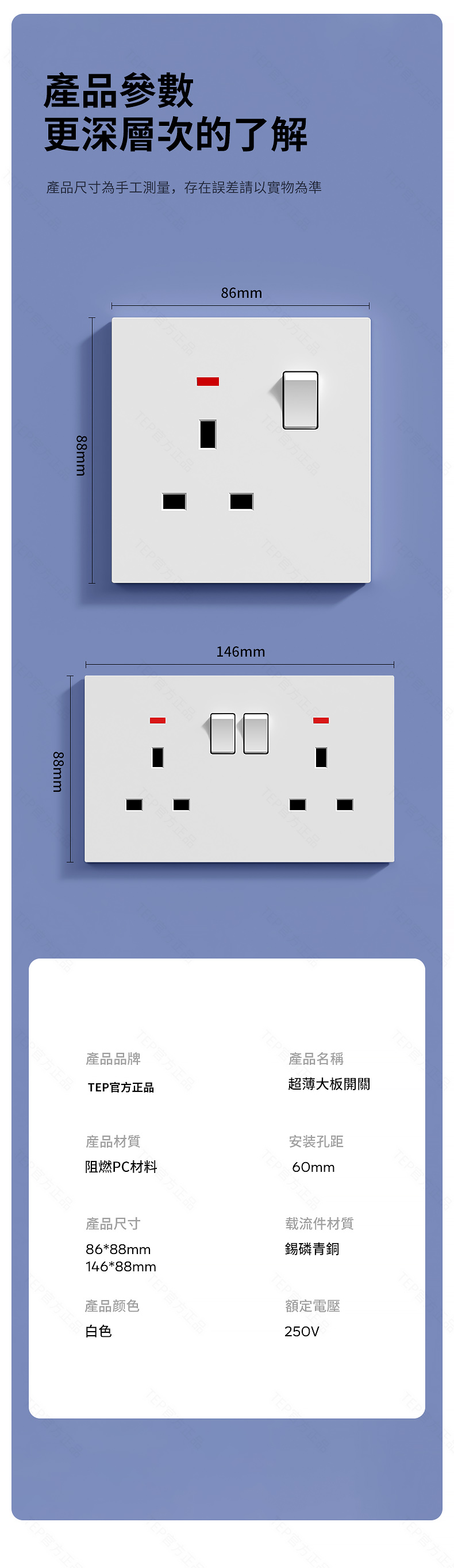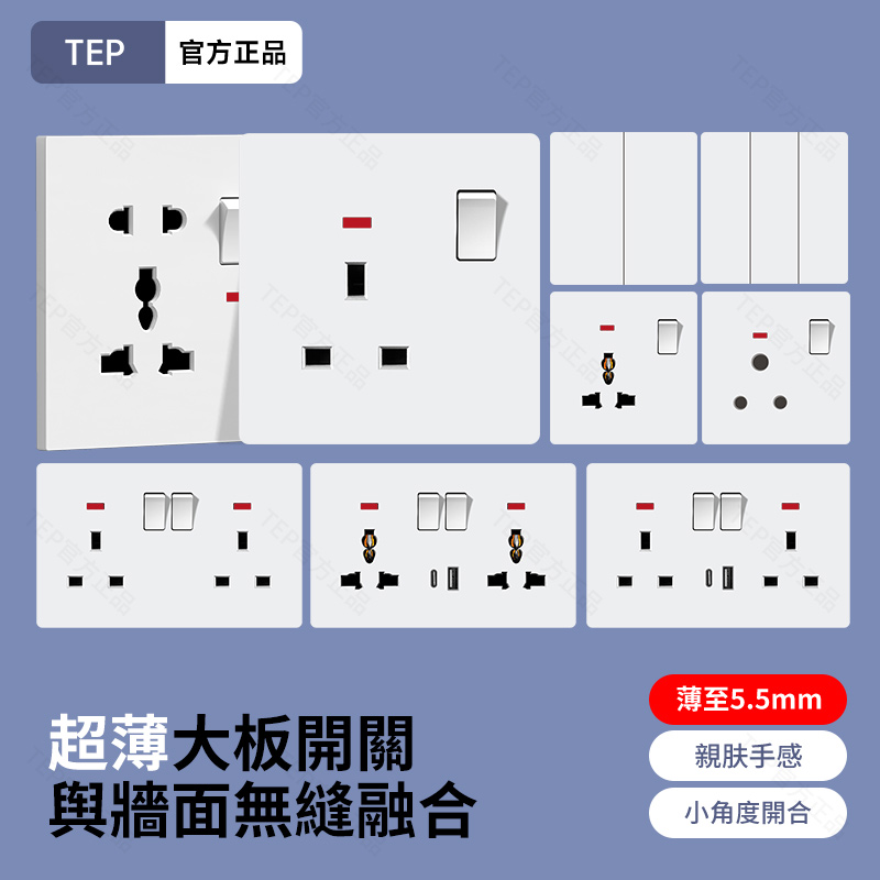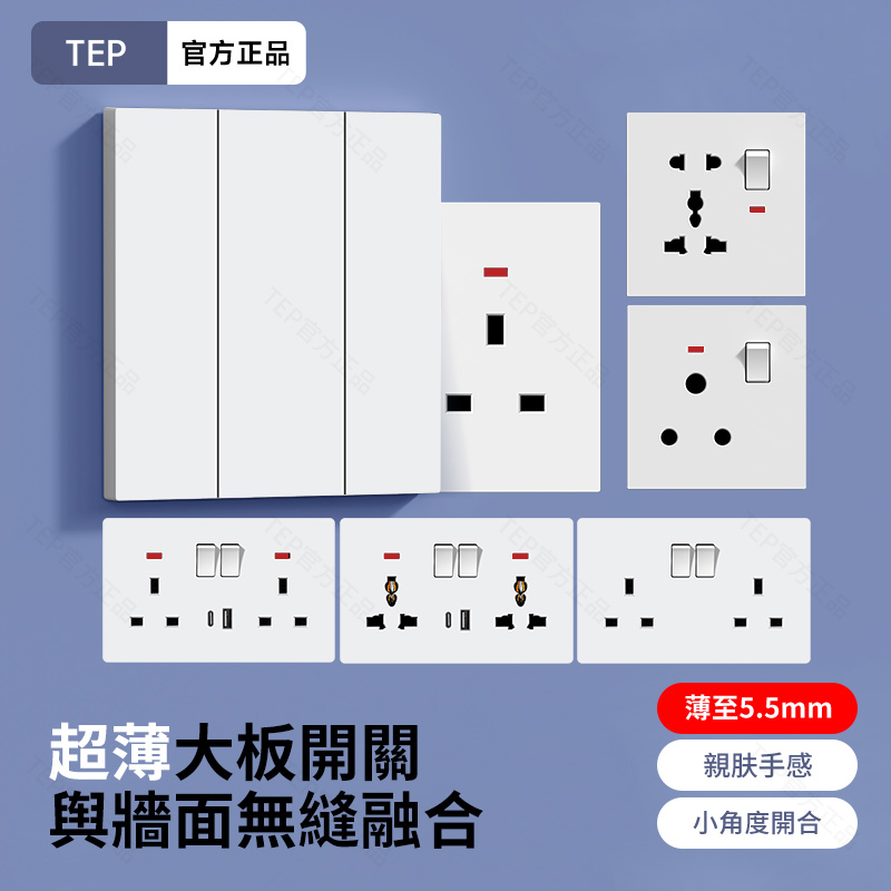 L8 PC超薄膚感白超薄大板開關 超薄大板開關 與牆面無縫融合 超薄設計|親膚手感|安全防護 超薄大板小細節 更放心 超薄大板薄至5.5mm PC阻燃材質 耐拔插設計 一鍵通斷 親肤手感