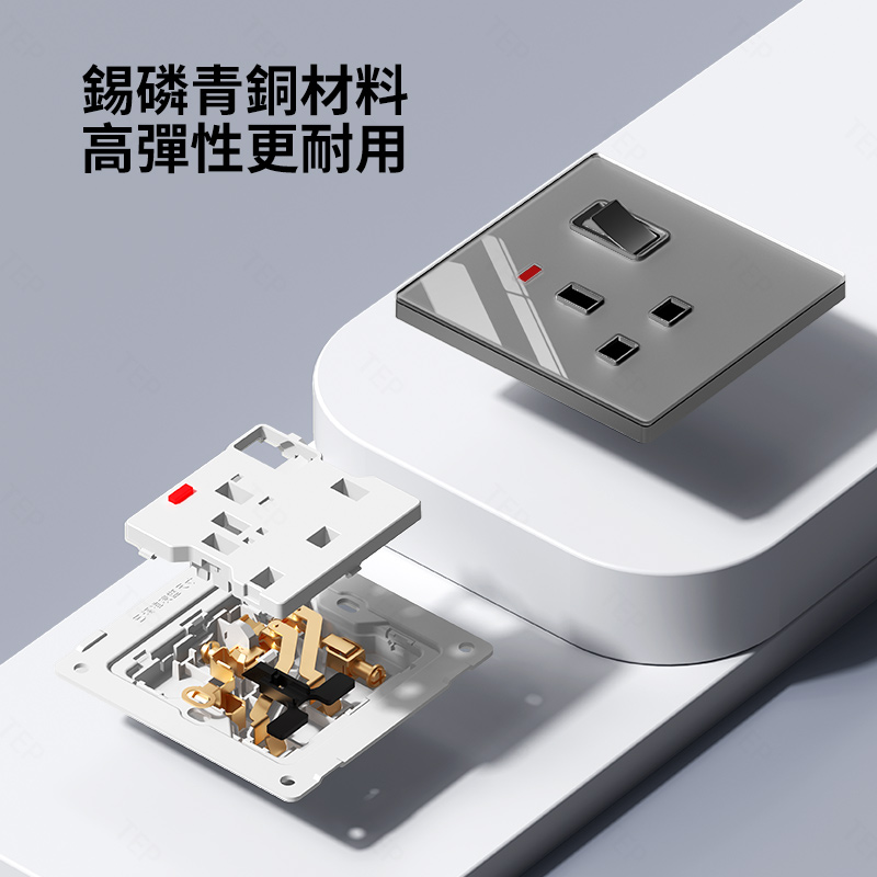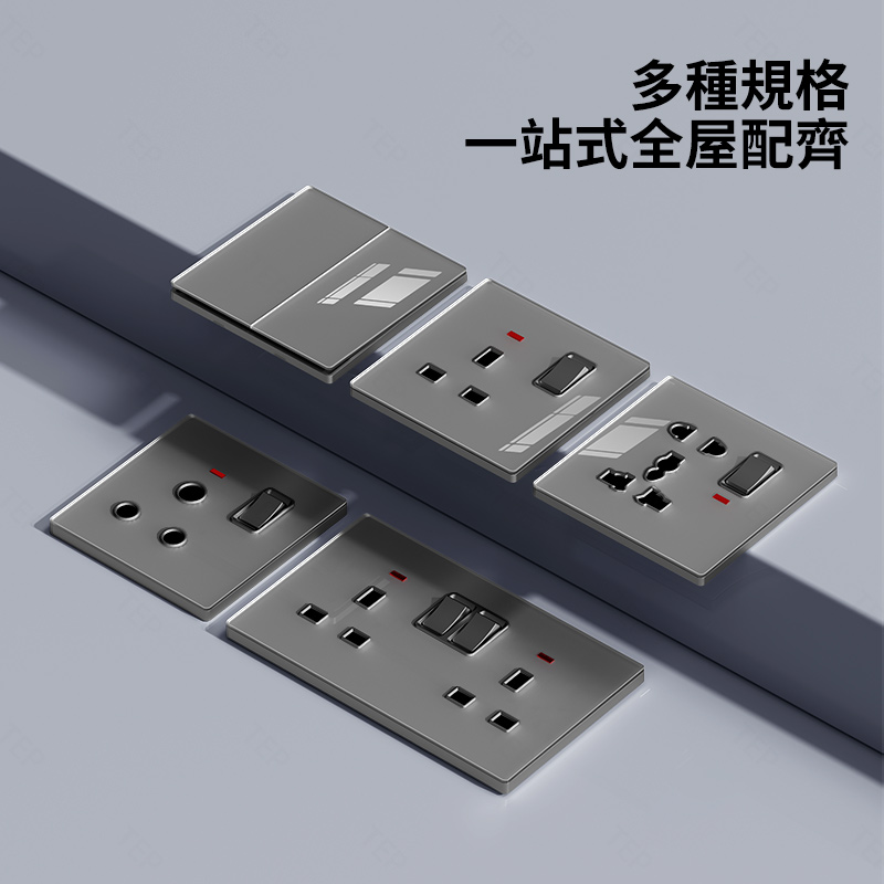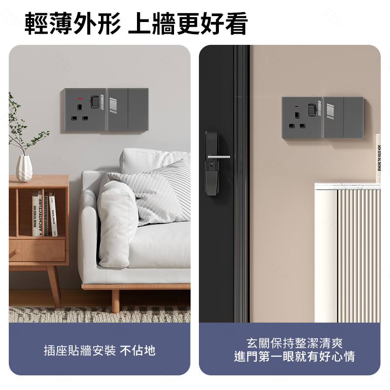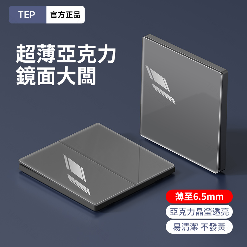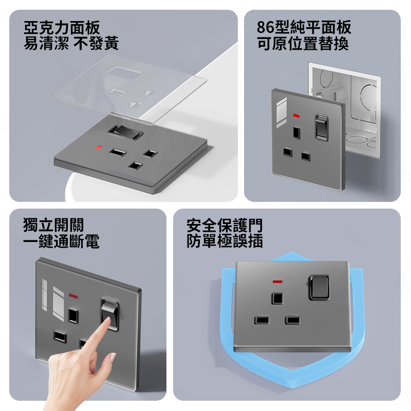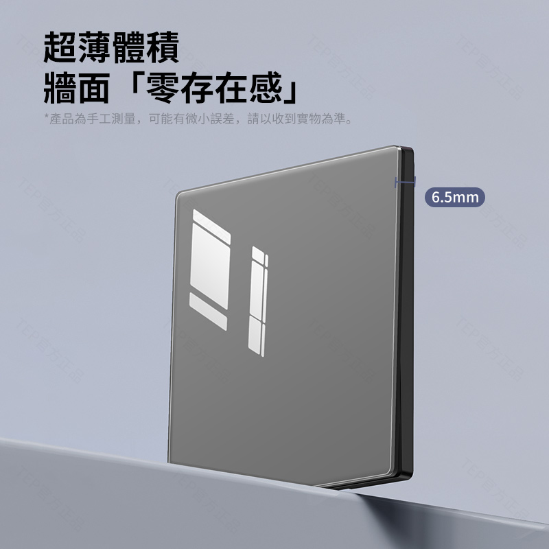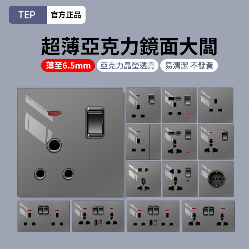 亞克力灰色鏡面大板開關插座 超薄設計 鏡面質感 易清潔 不發黃 超薄亞克力大板小細節 更放心 纖薄外形上牆更輕盈