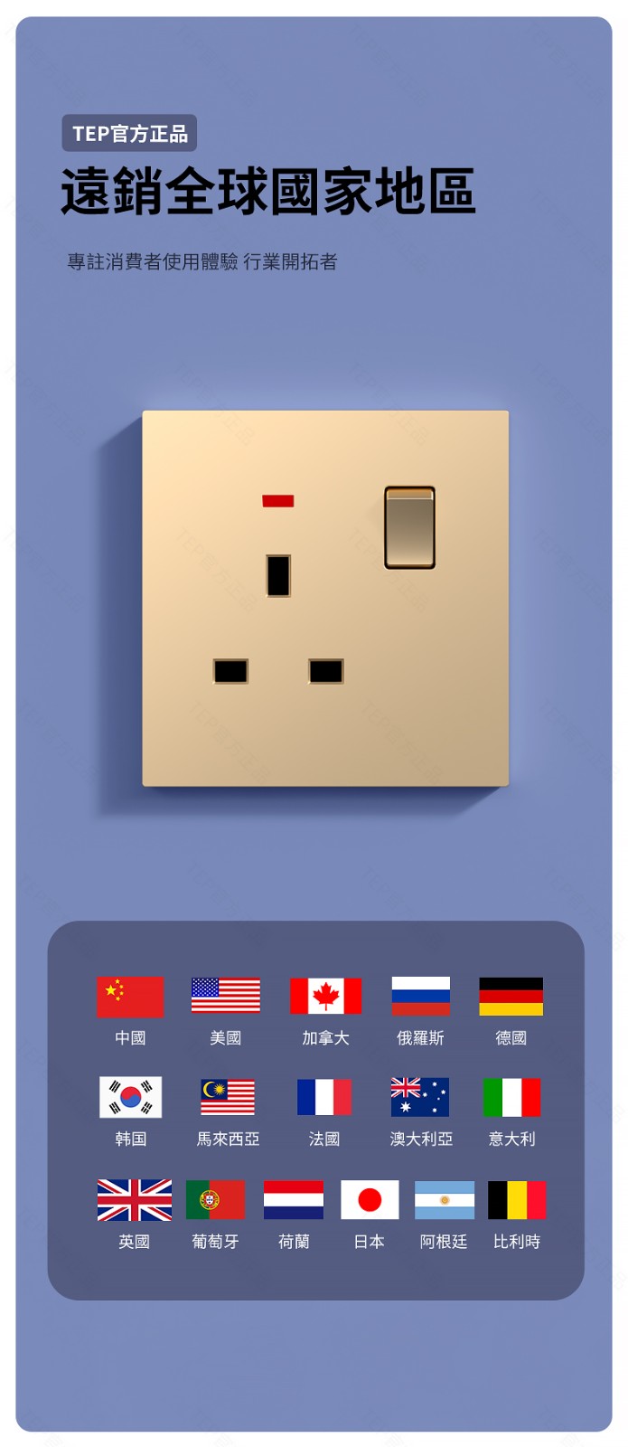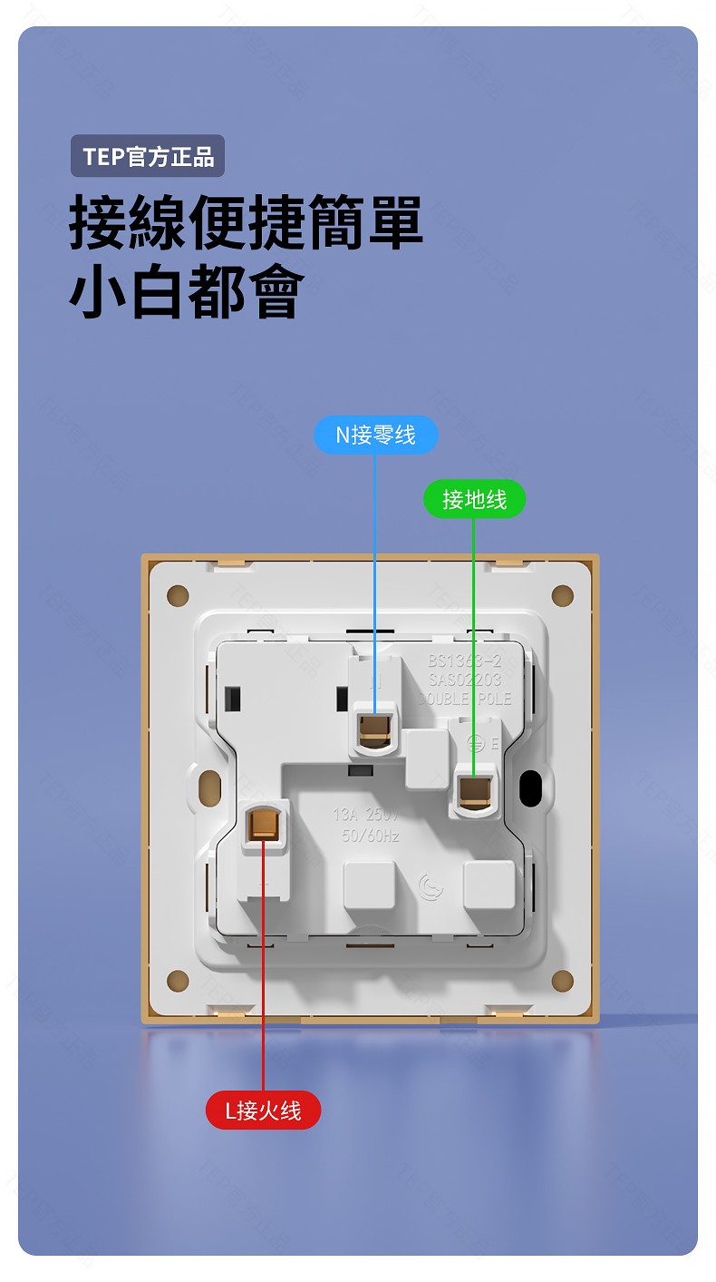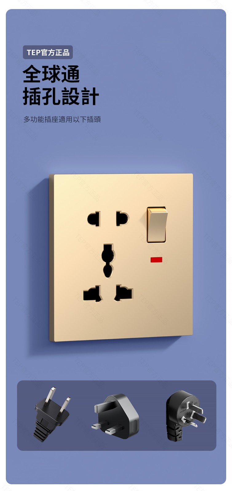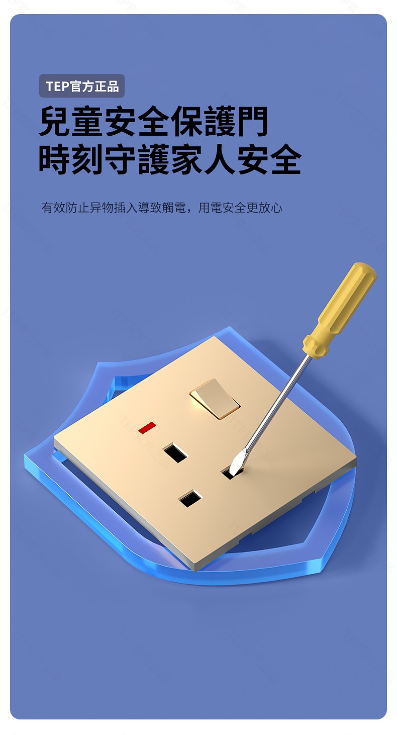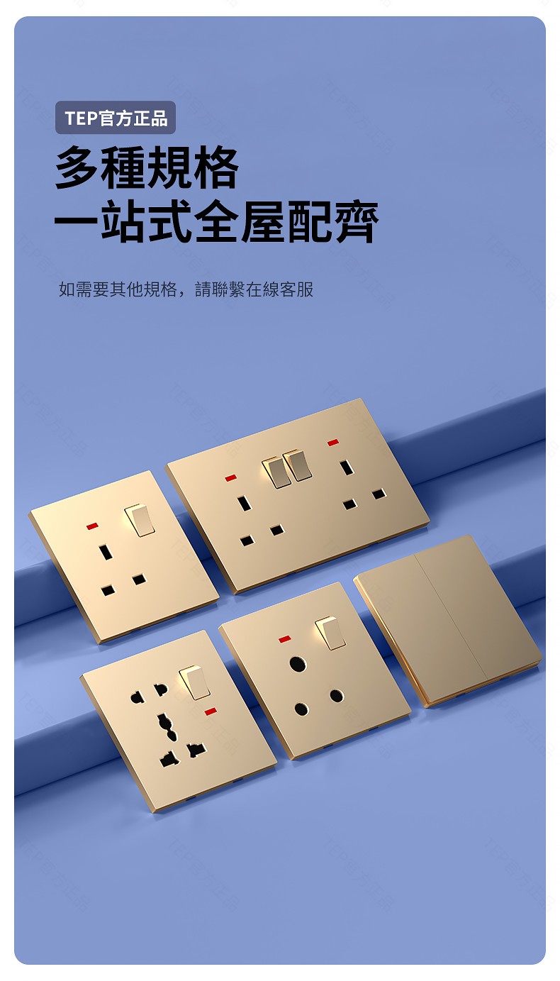 L8 PC超薄膚感英標金色大板開關 超薄大板開關 與牆面無缝融合 超薄大板薄至5.5mm PC阻燃材質 耐拔插設計 一鍵通斷電 親肤手感