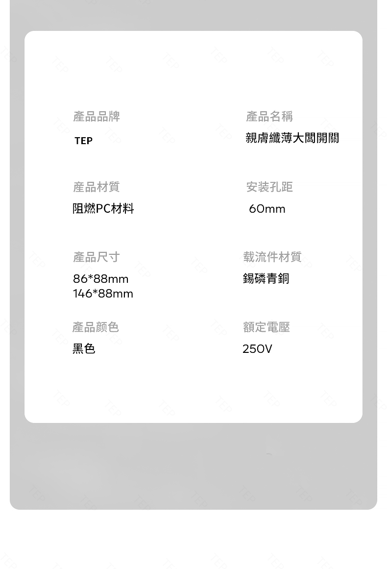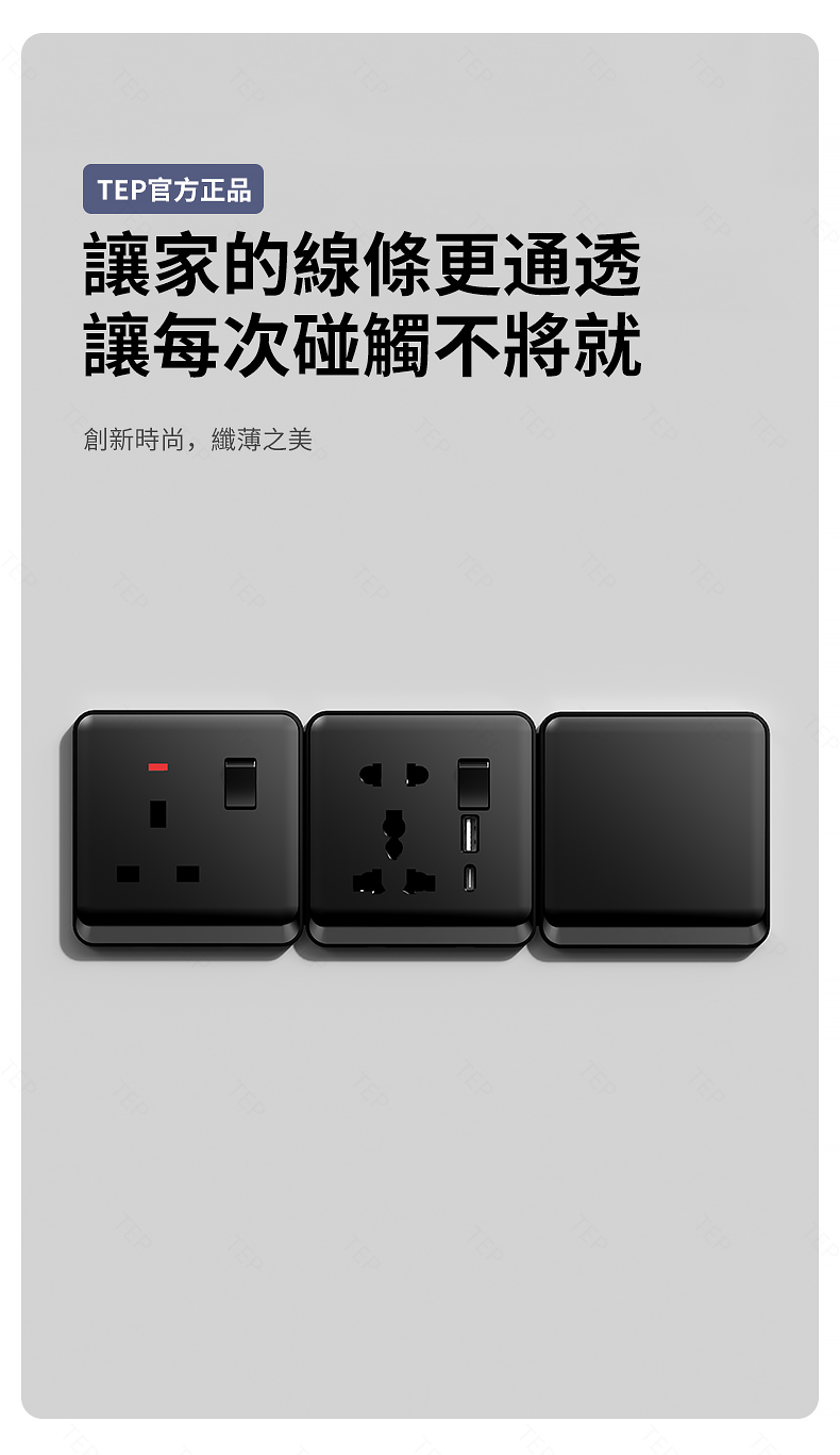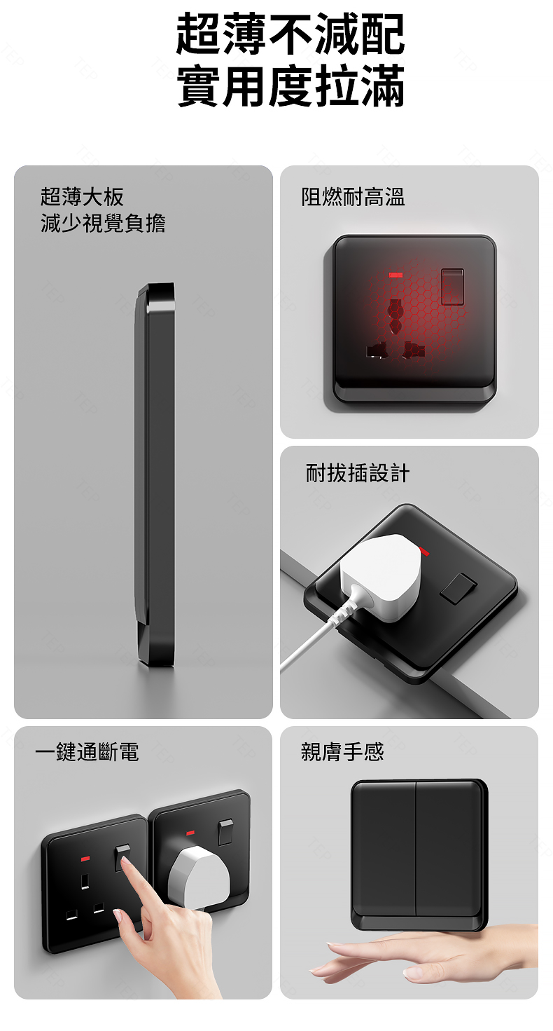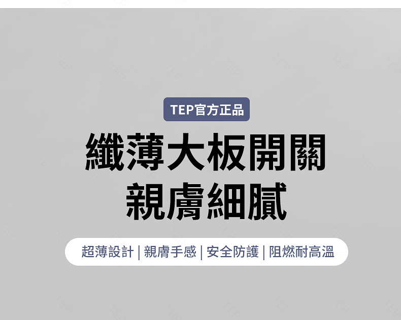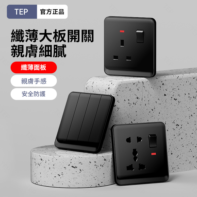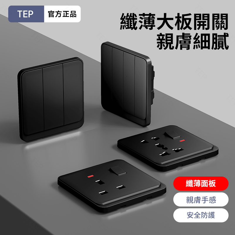 纖薄大板開關親膚細腻 超薄設計|親膚手感|安全防護|阻燃耐高溫