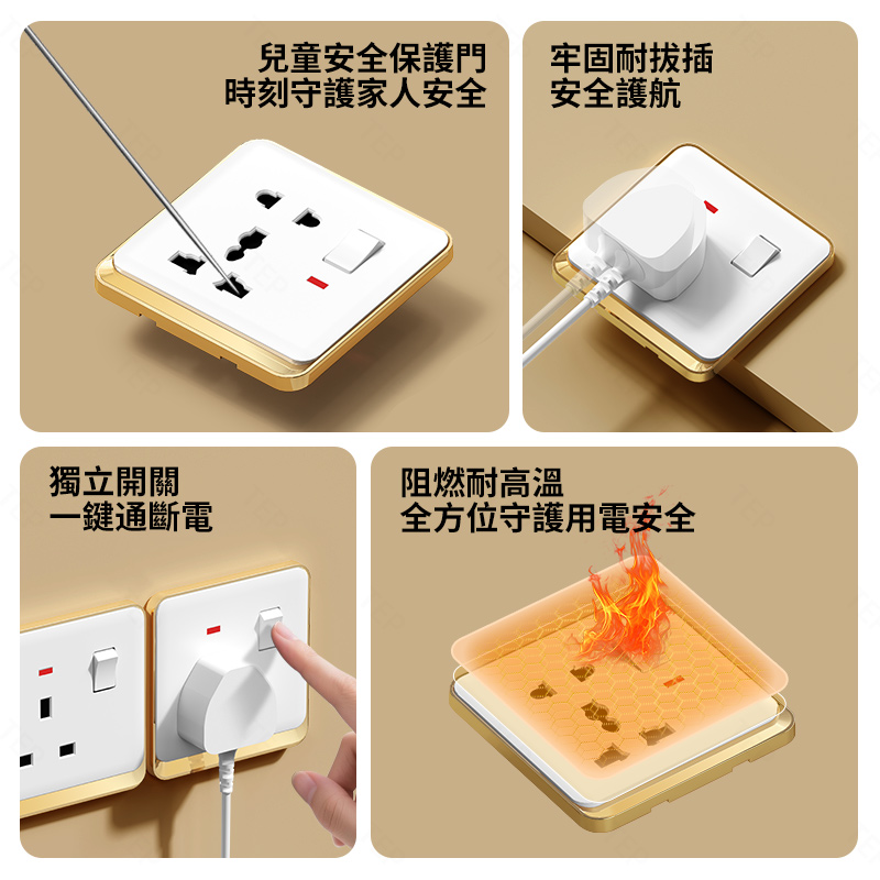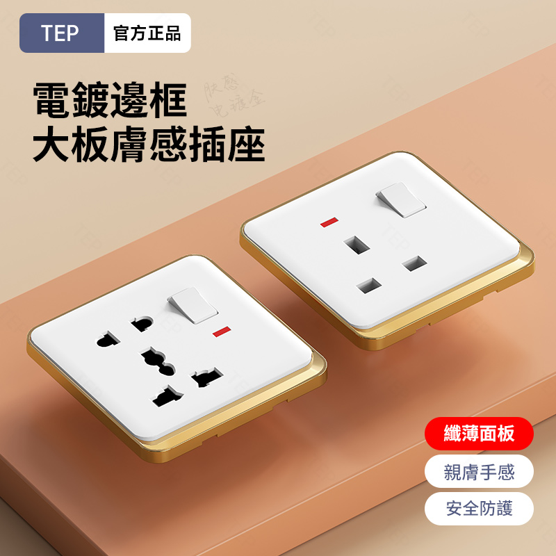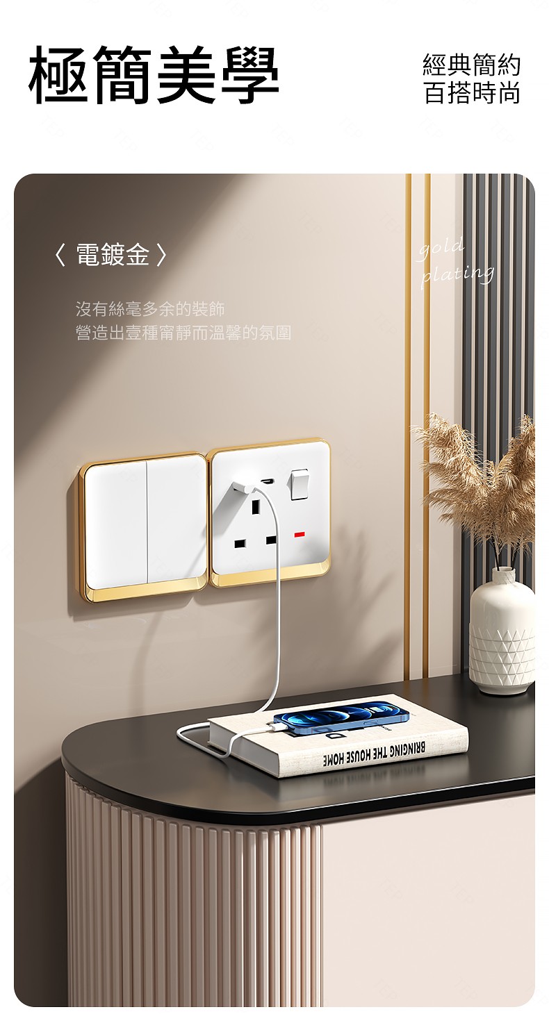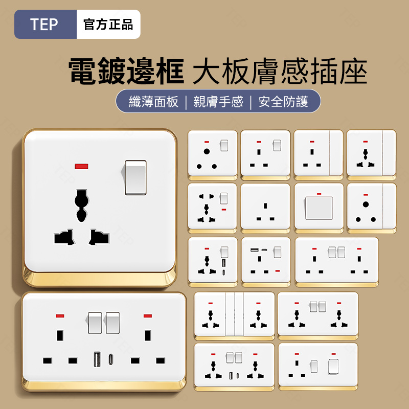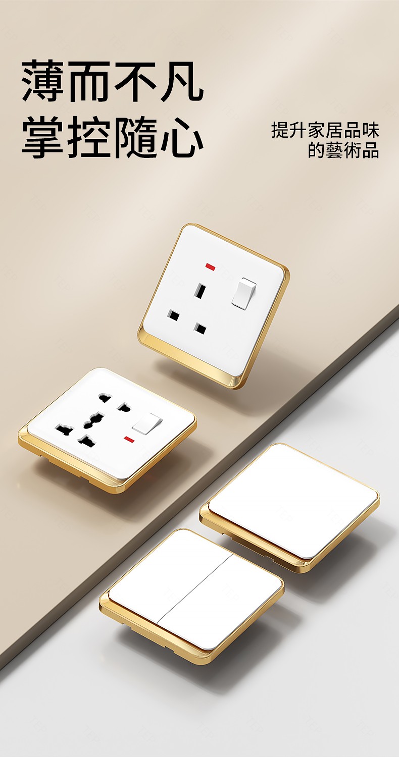 電鍍邊框大板膚感插座 纖薄面板 |親膚手感|安全防護 適配全球不挑“國籍 適配更多兼容廣泛<美標><歐標><澳標><英標> 兒童安全保護門時刻守護家人安全 牢固耐拔插安全護航 獨立開關一鍵通斷電 阻燃耐高溫全方位守護用電安全